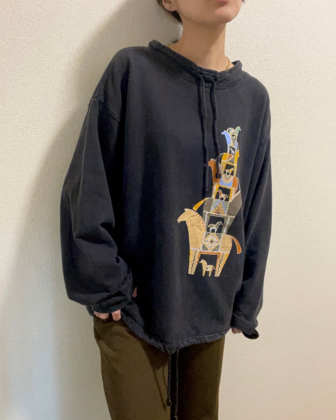ホーストーテム(馬のモチーフ)がプリントされたスウェット。