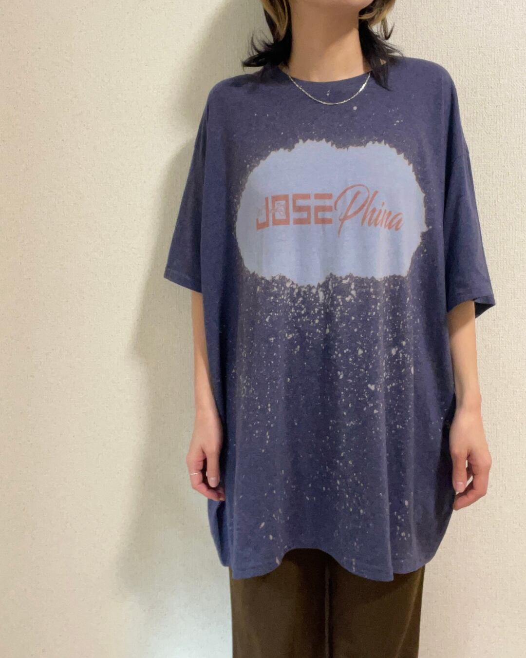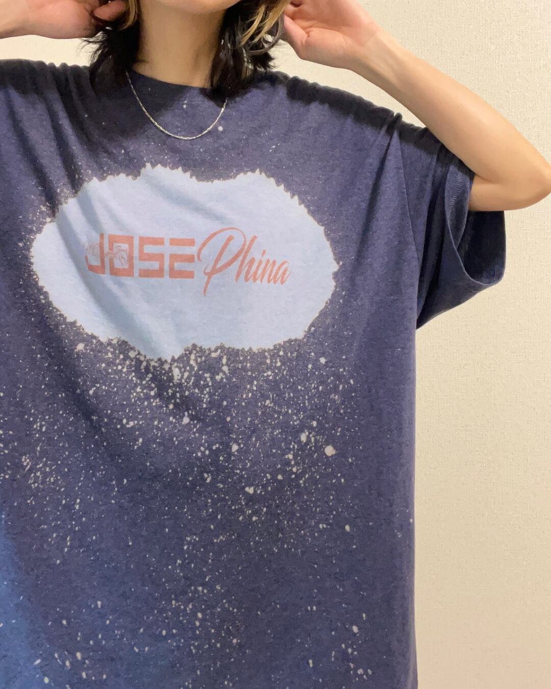 "JOSE Phina"のロゴと飛び散るペンキのようなデザインが素敵なTシャツです。