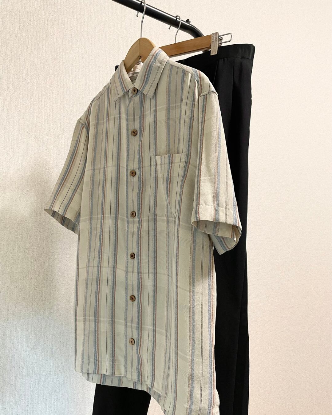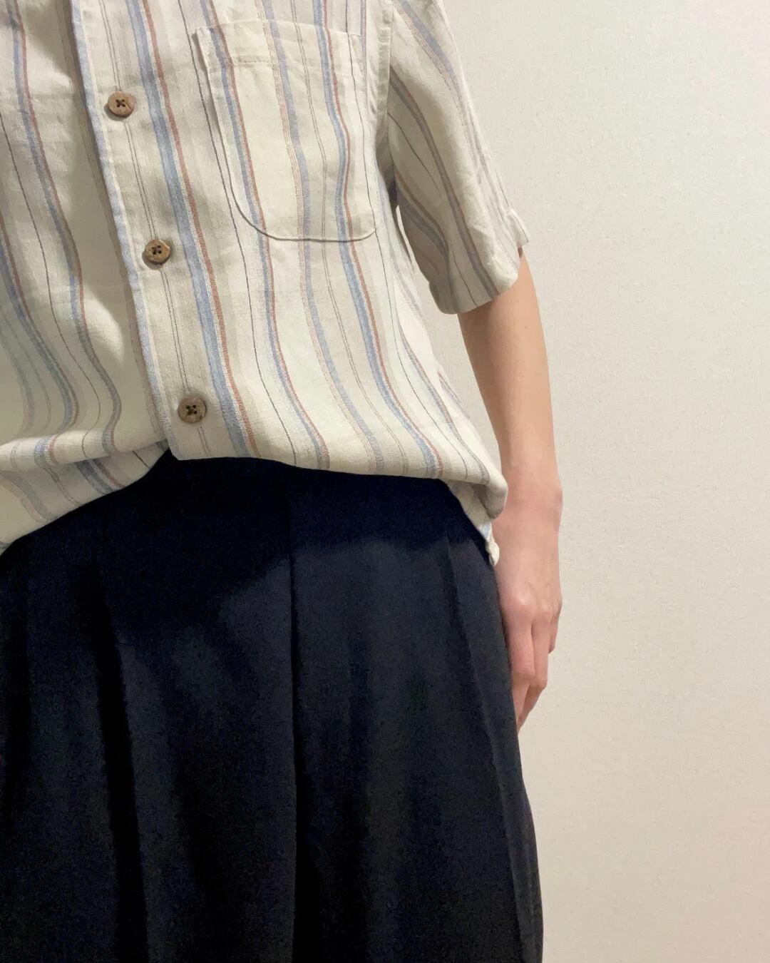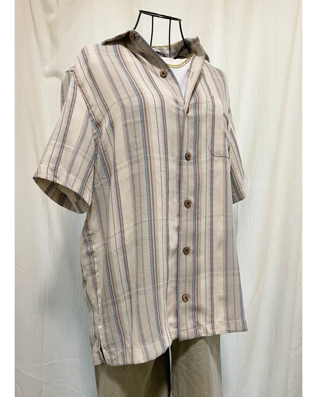 爽やかなマルチストライプ柄の半袖シャツです。