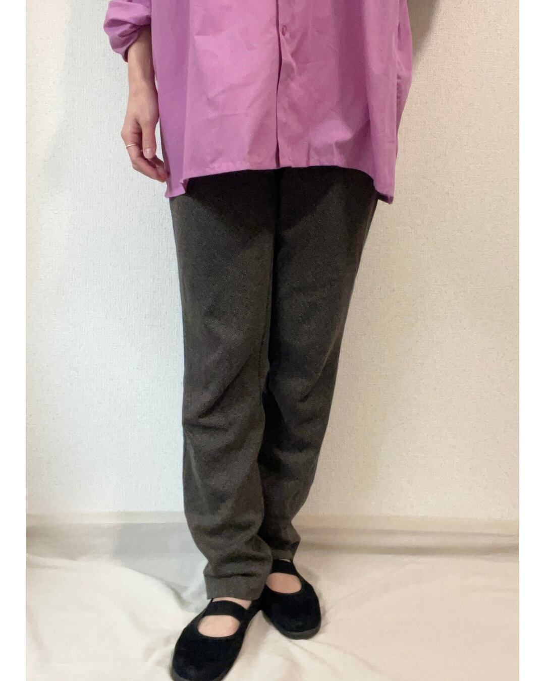 遠くから見ると無地のようにも見え、シックで落ち着いた雰囲気の柄ボトムです。