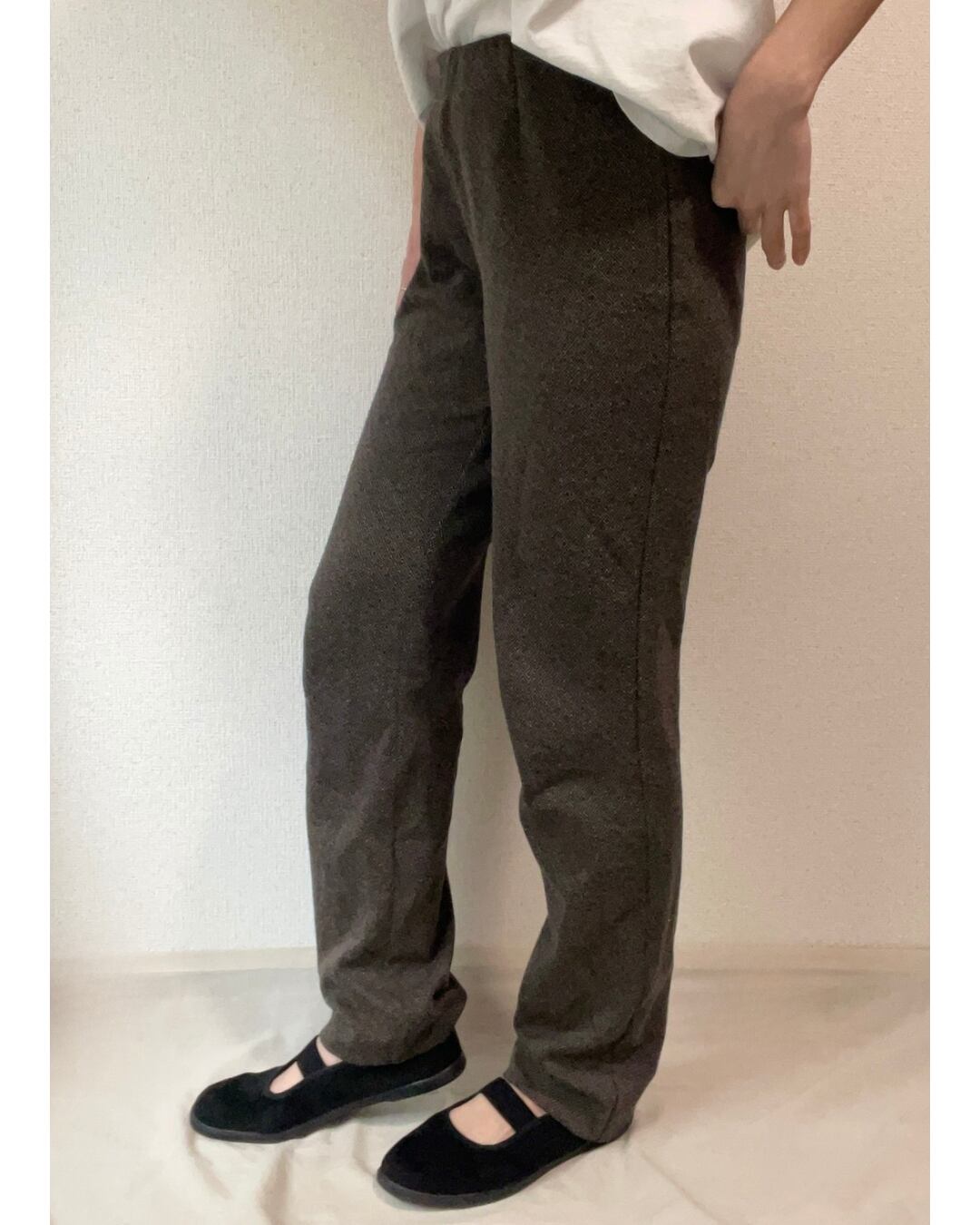 伸縮性のあるカットソージャガードの生地で、とても履き心地よく、リラックスして履けるパンツです。