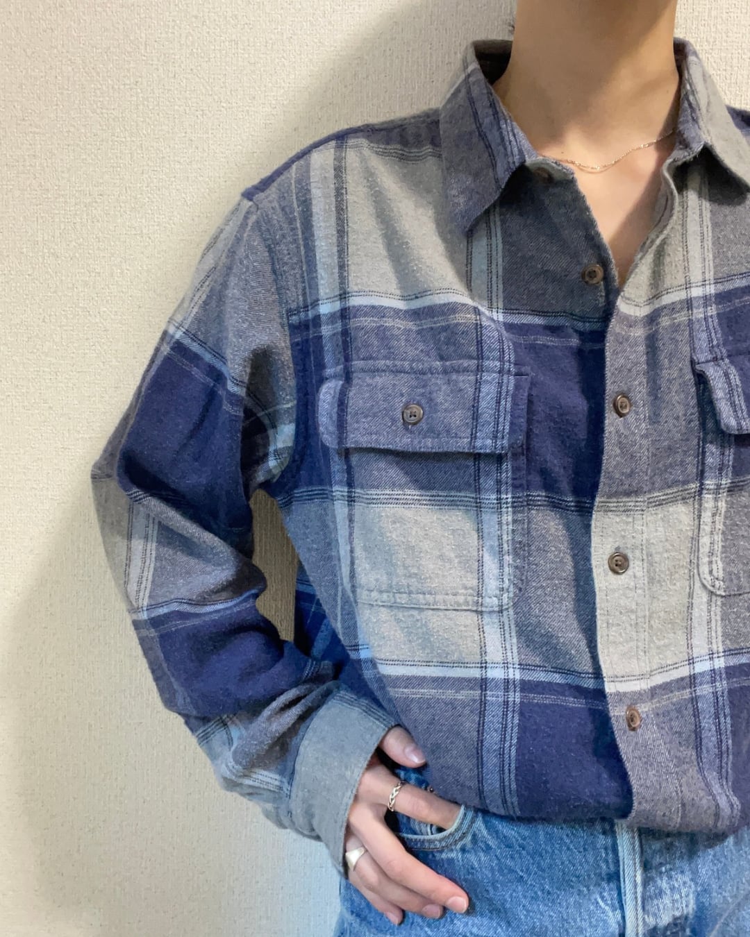 丈夫なコットンフランネル生地が使われており、全体的に毛羽立ちはありますが、これも古着ならではの味があり、程よいユーズド感が出ています。