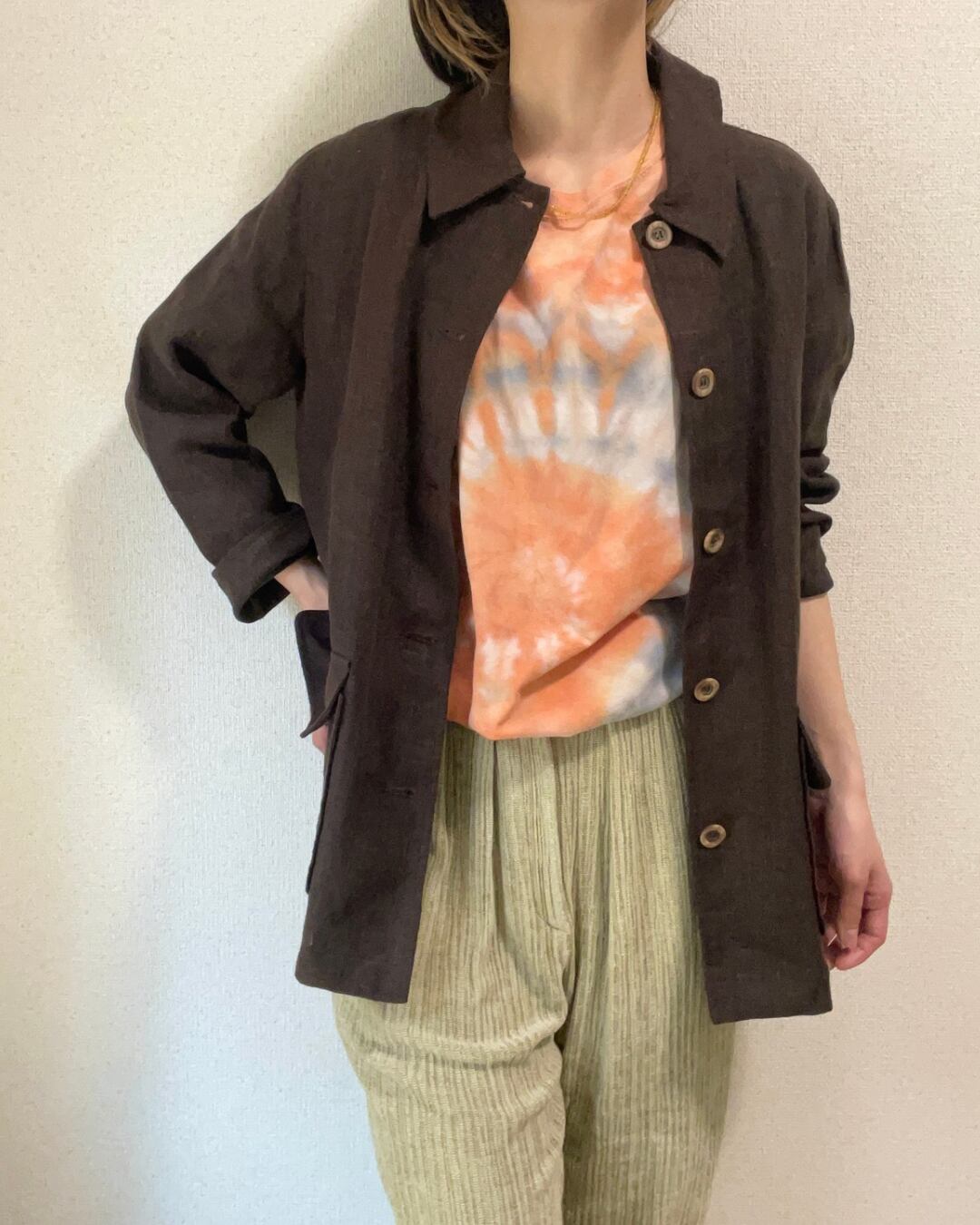 オレンジ×グレーの色合いが素敵なタイダイ染めTシャツです。