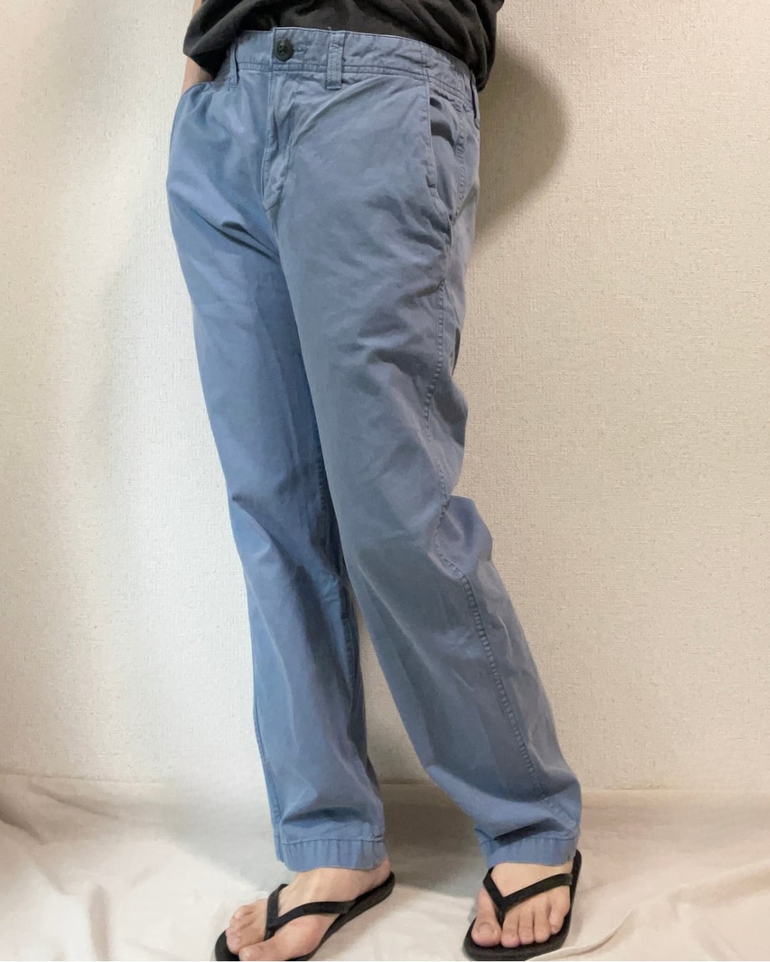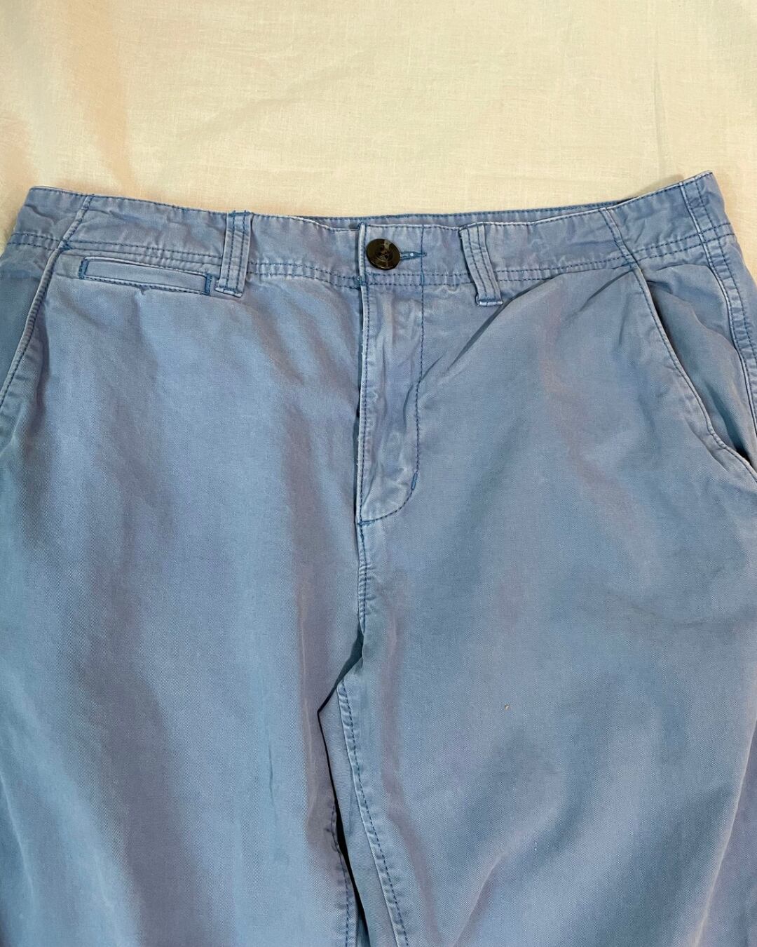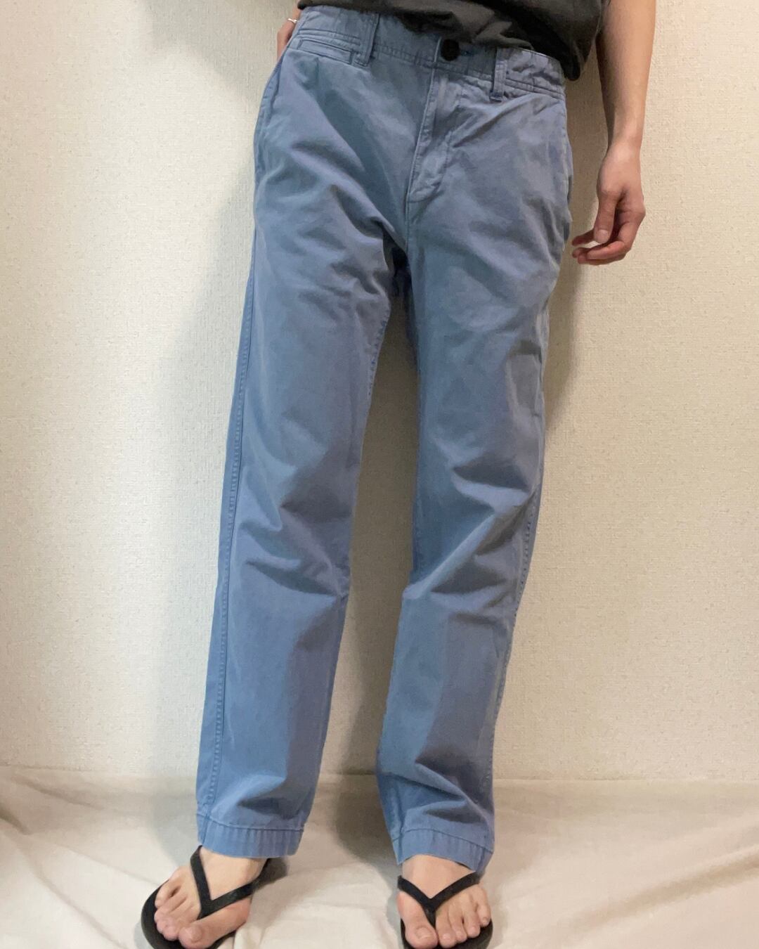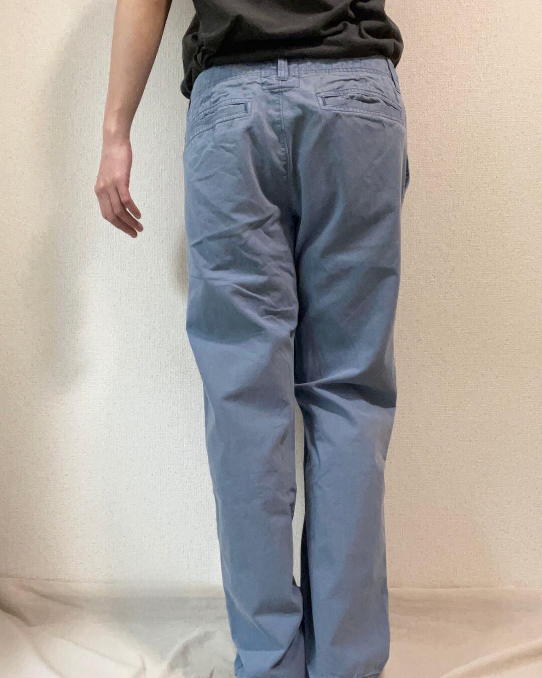 何度も洗いをかけたような、いい雰囲気のくすみブルー。