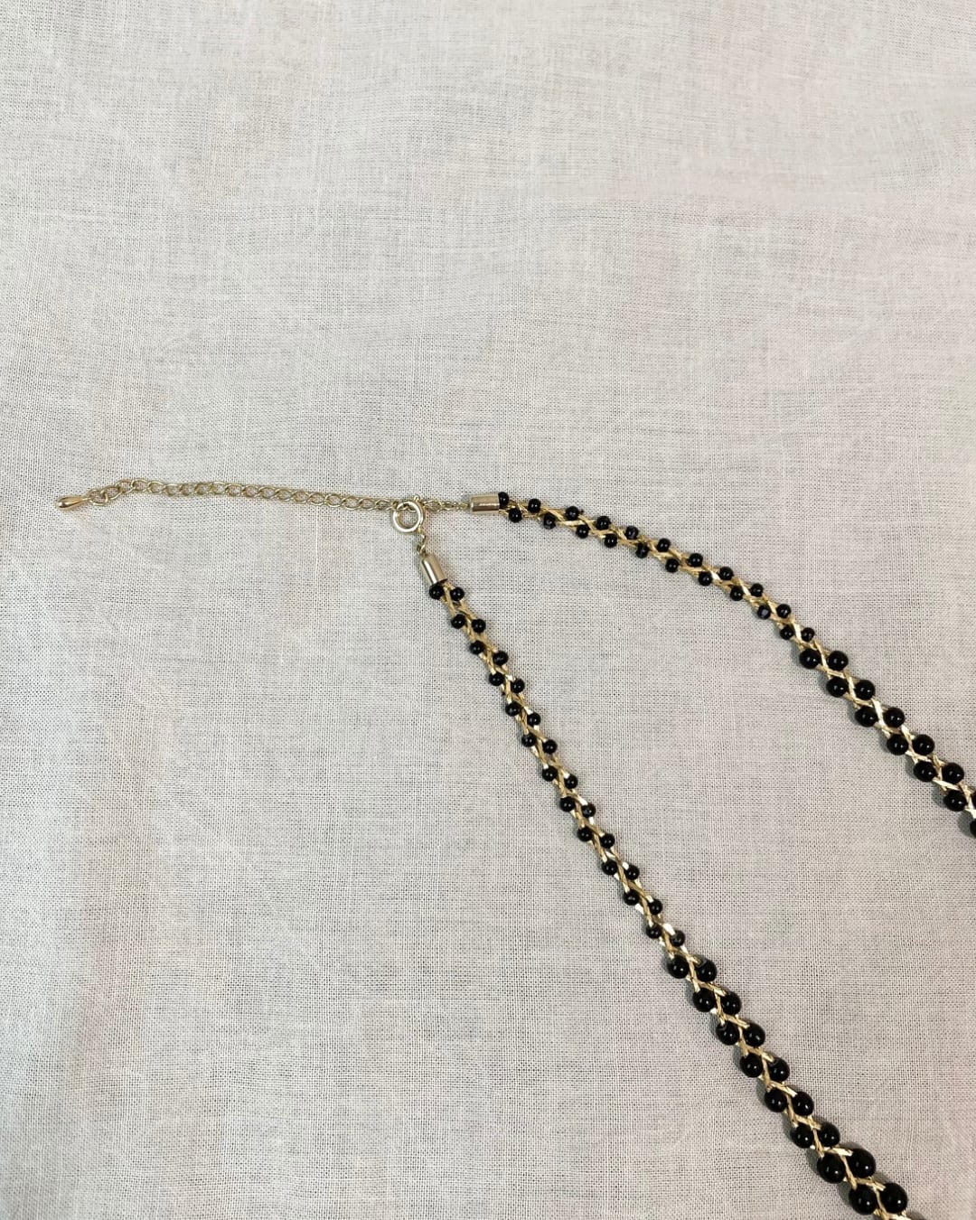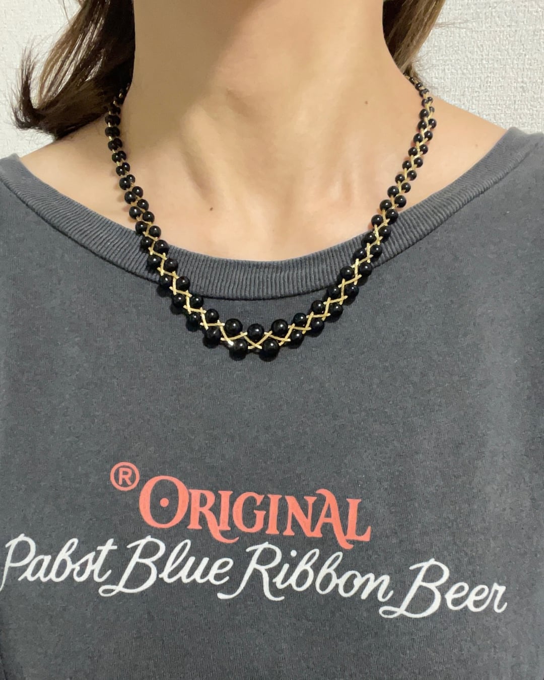 コーディネートの引き締め役にもなる、ブラックビーズを使ったネックレスです。
