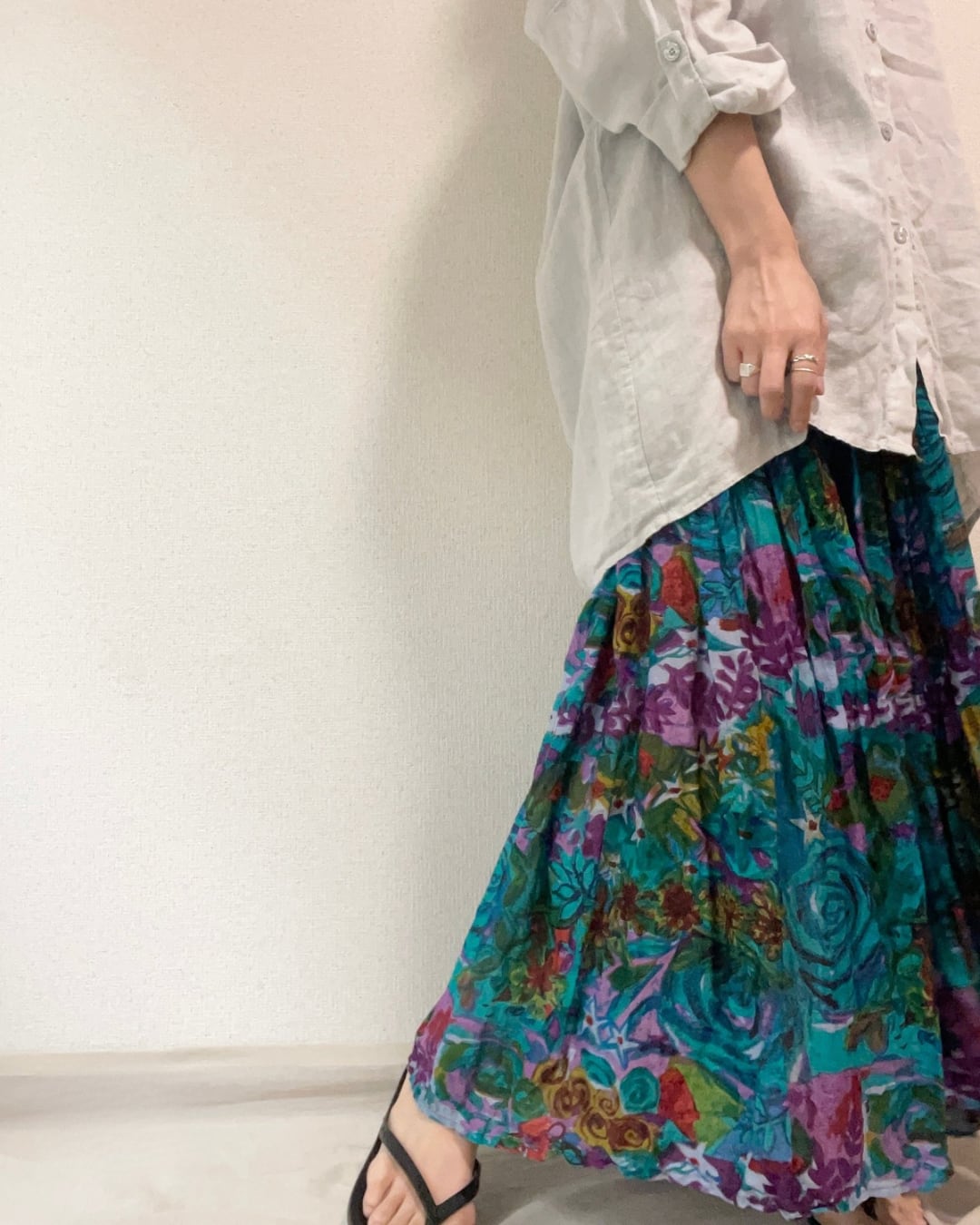 裾までたっぷりと生地が使われており、シルエットがとても綺麗なギャザースカートタイプ。