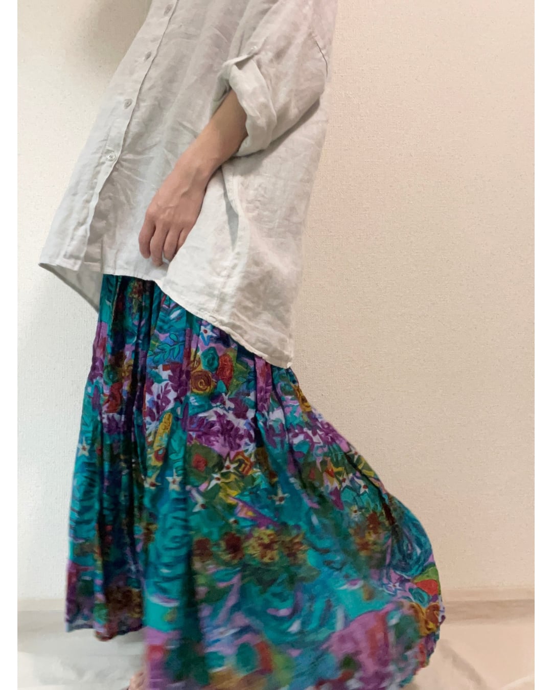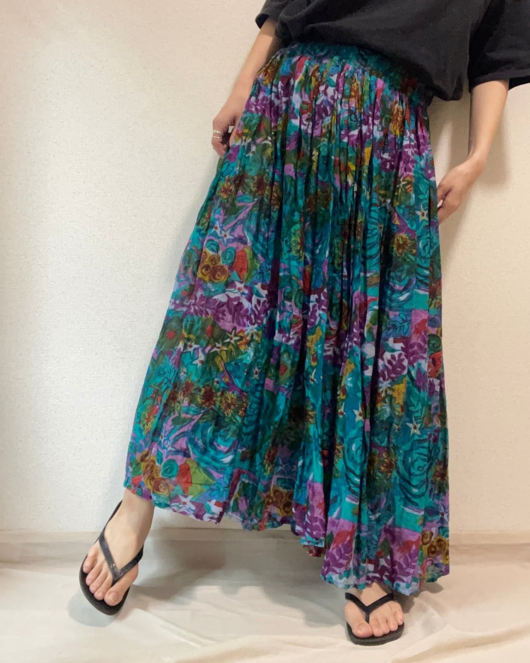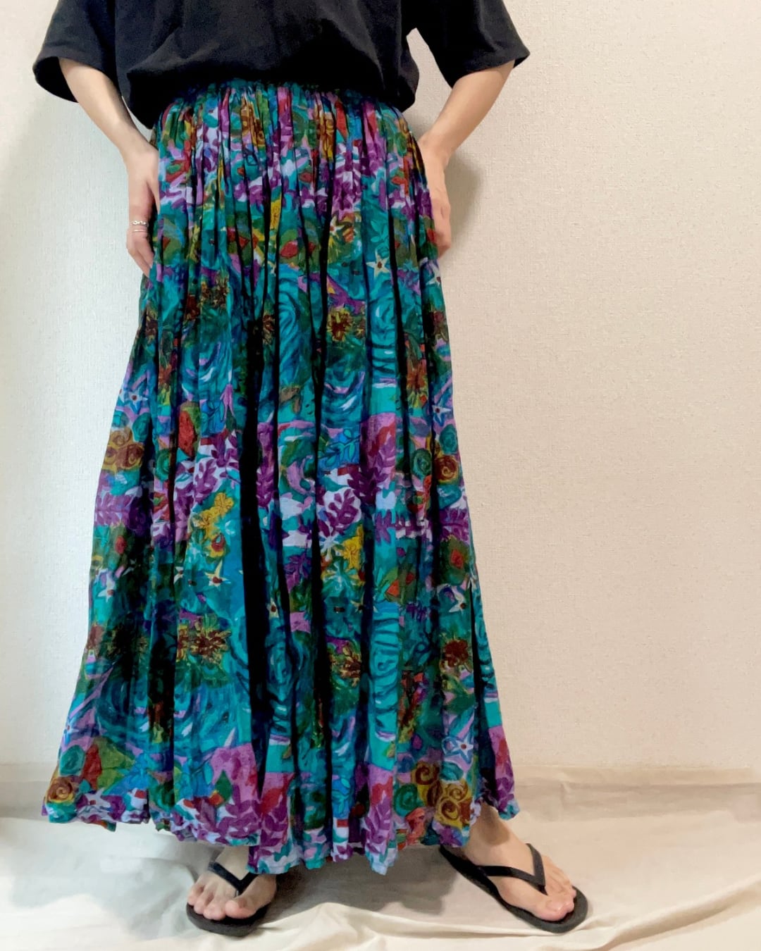 インド綿 エメラルドグリーン 花柄 ロングスカート