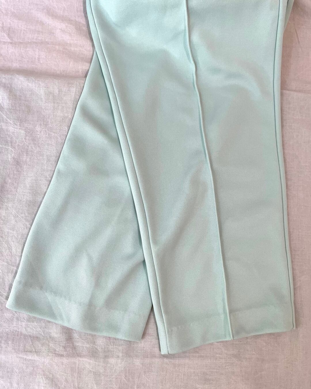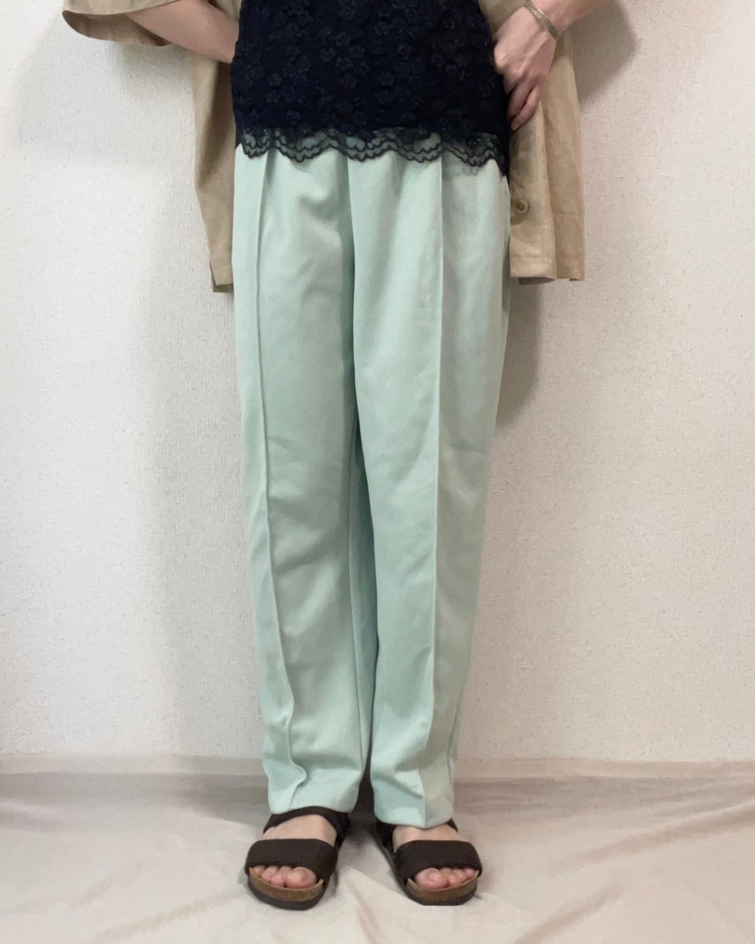 ミントグリーン センタープレス イージーパンツ