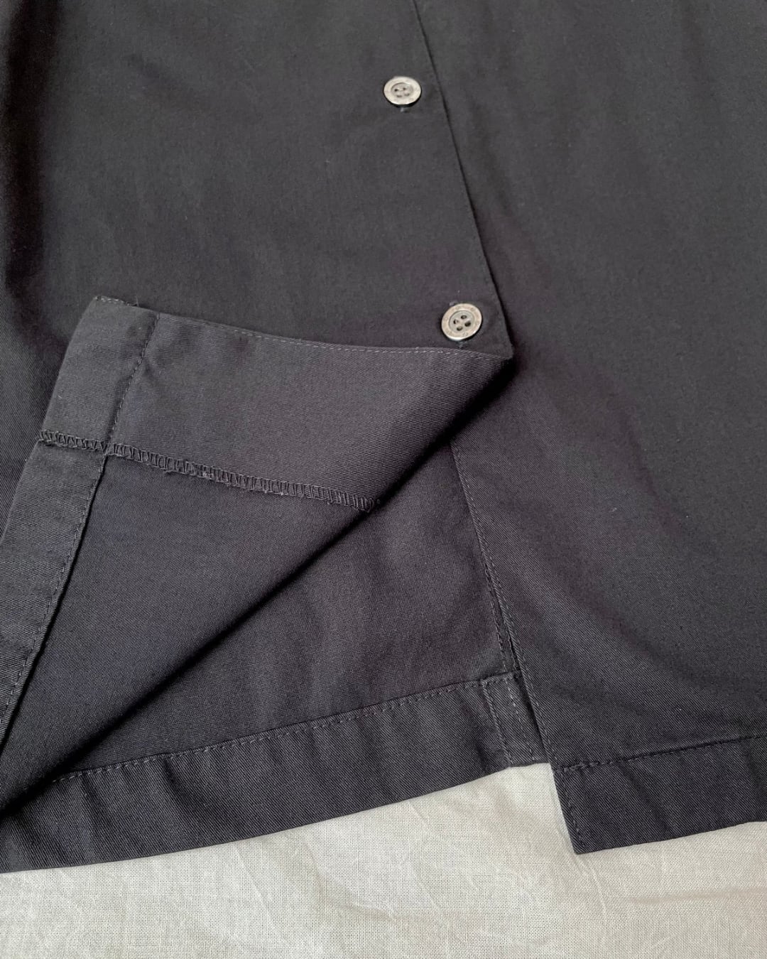 ボタンはアンティークな雰囲気のあるブラックシルバー。縁の刻印もよく見ると可愛らしいです。