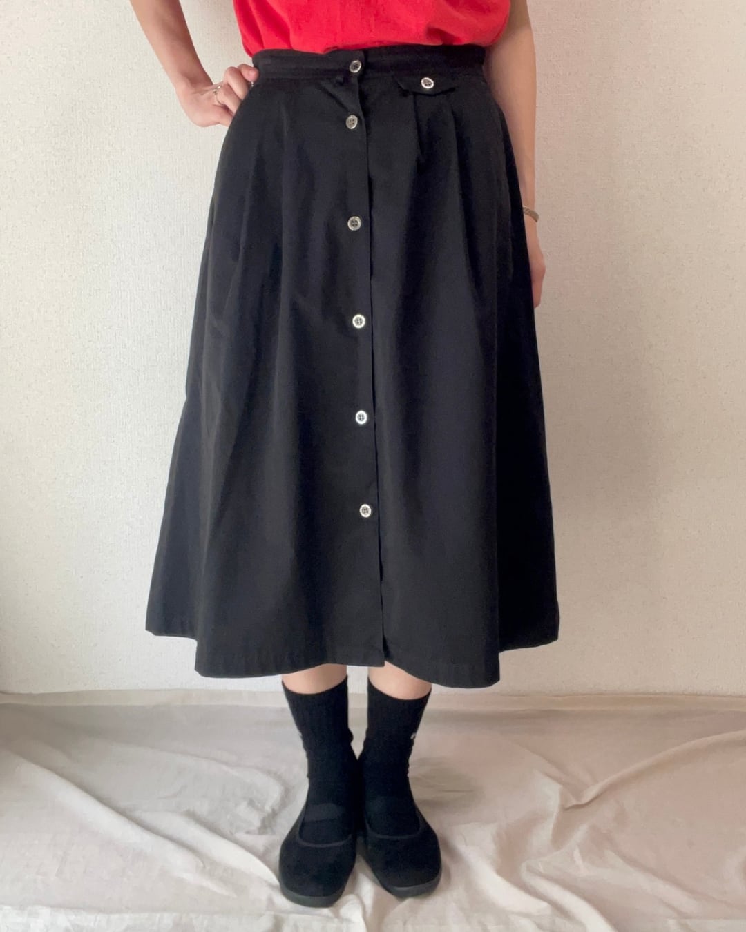 フロントボタン ブラック チノスカート