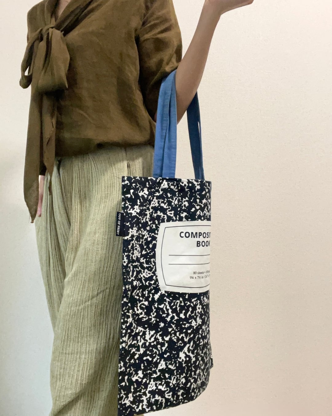 アメリカの代表的な大学ノート「COMPOSITION BOOK」をモチーフにしたトートバッグ。