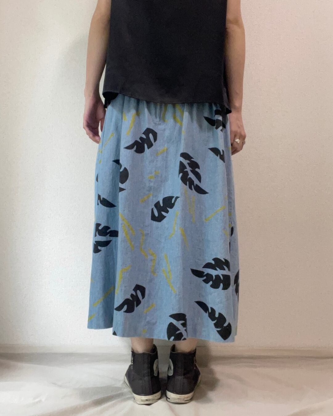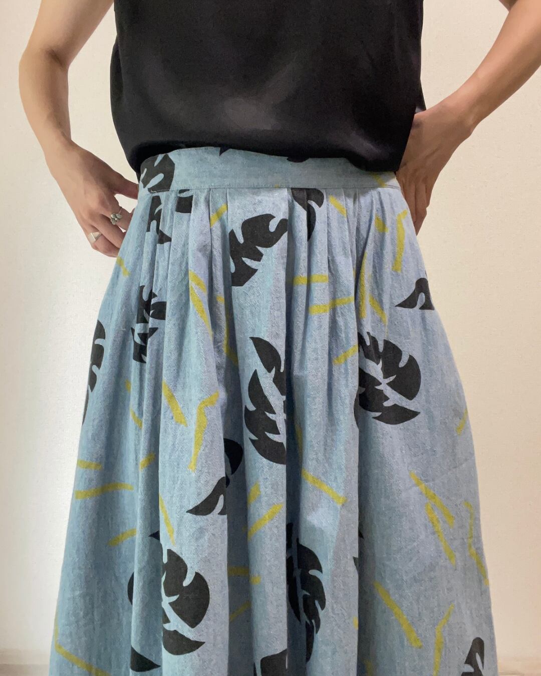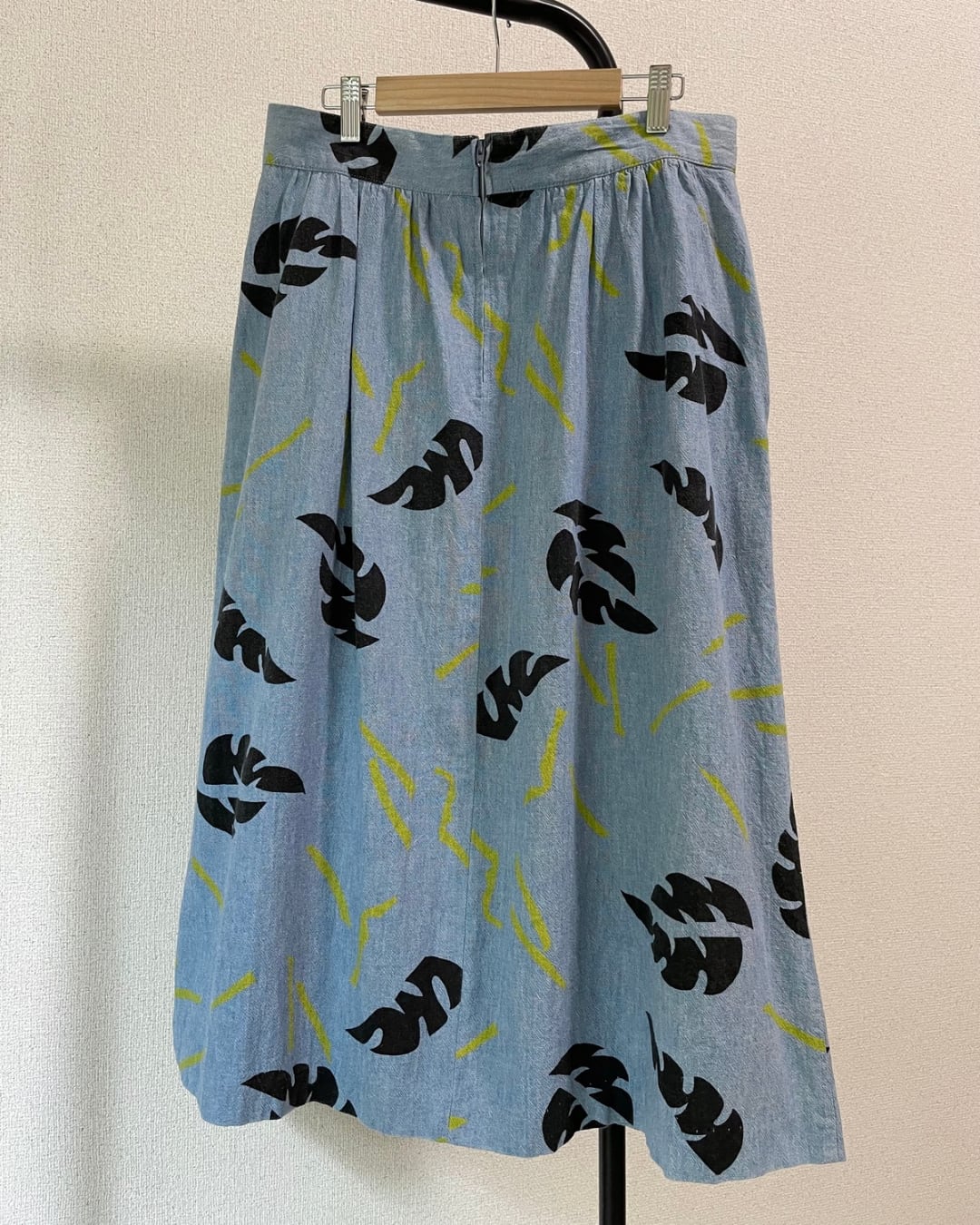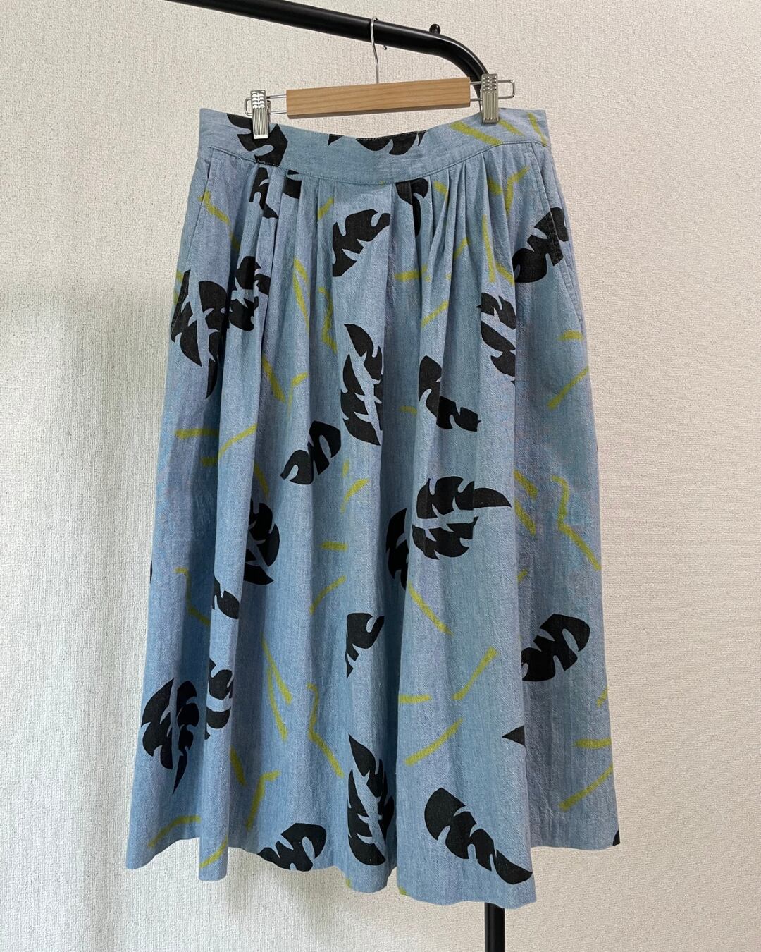葉っぱをモチーフとしたような柄が印象的なフレアスカートです。