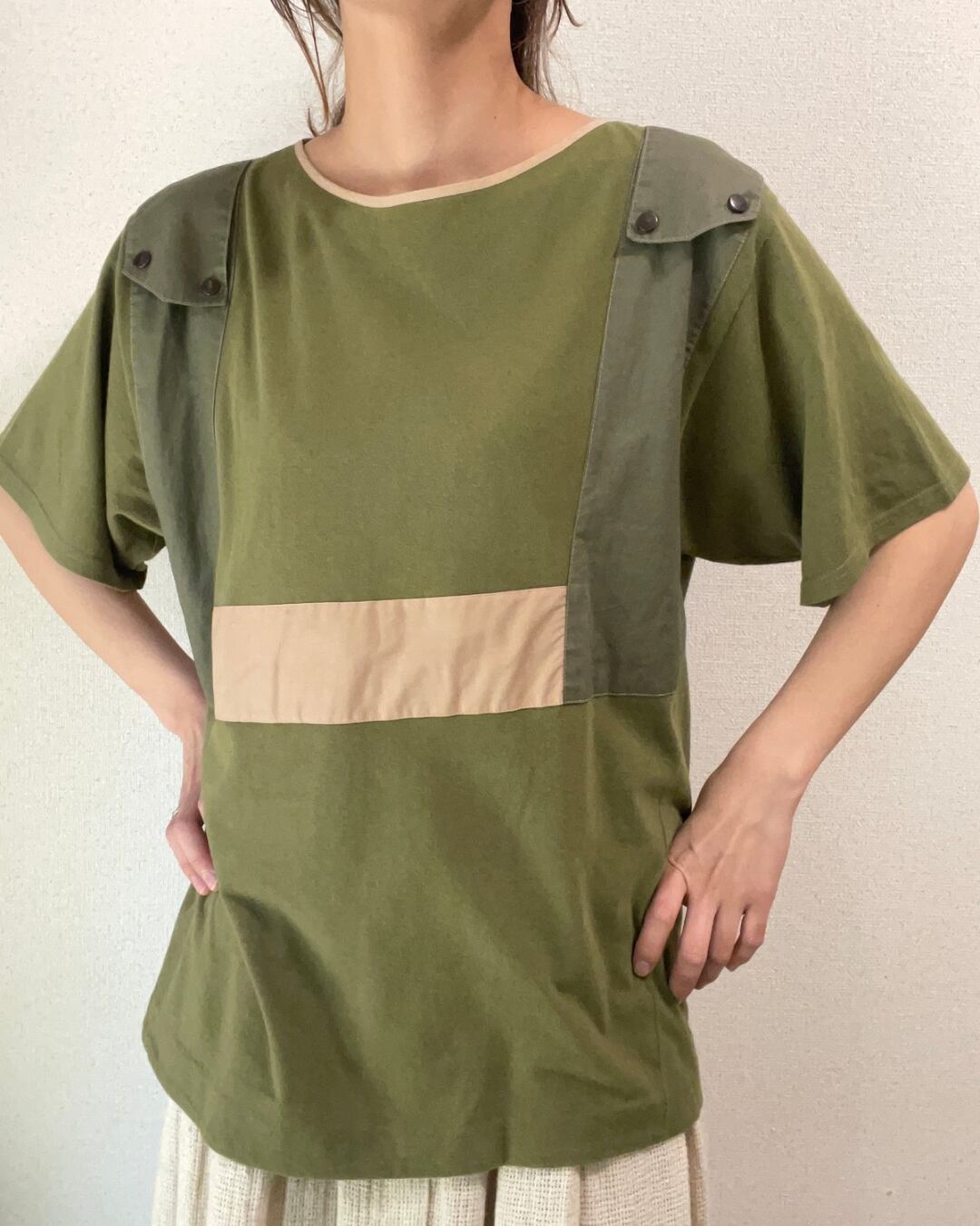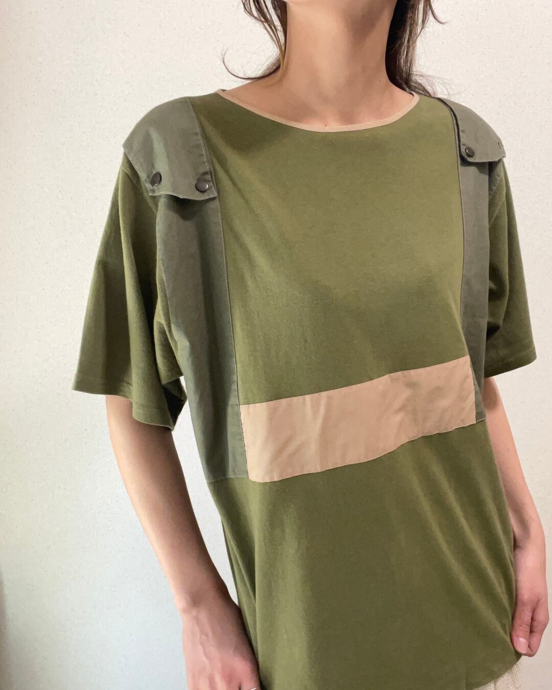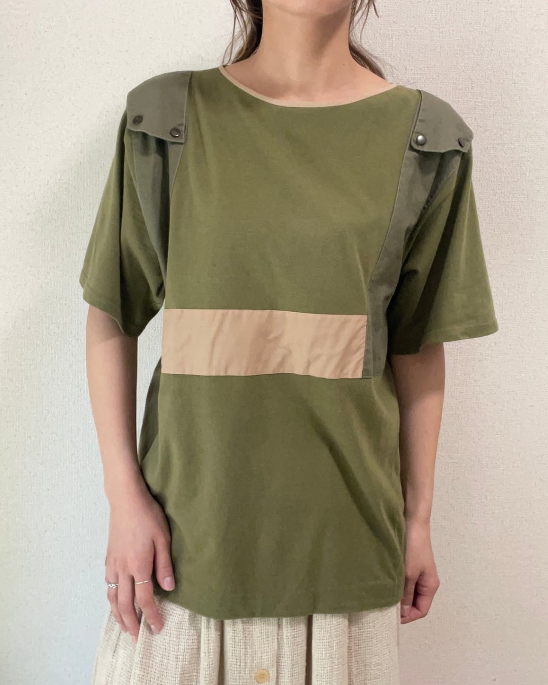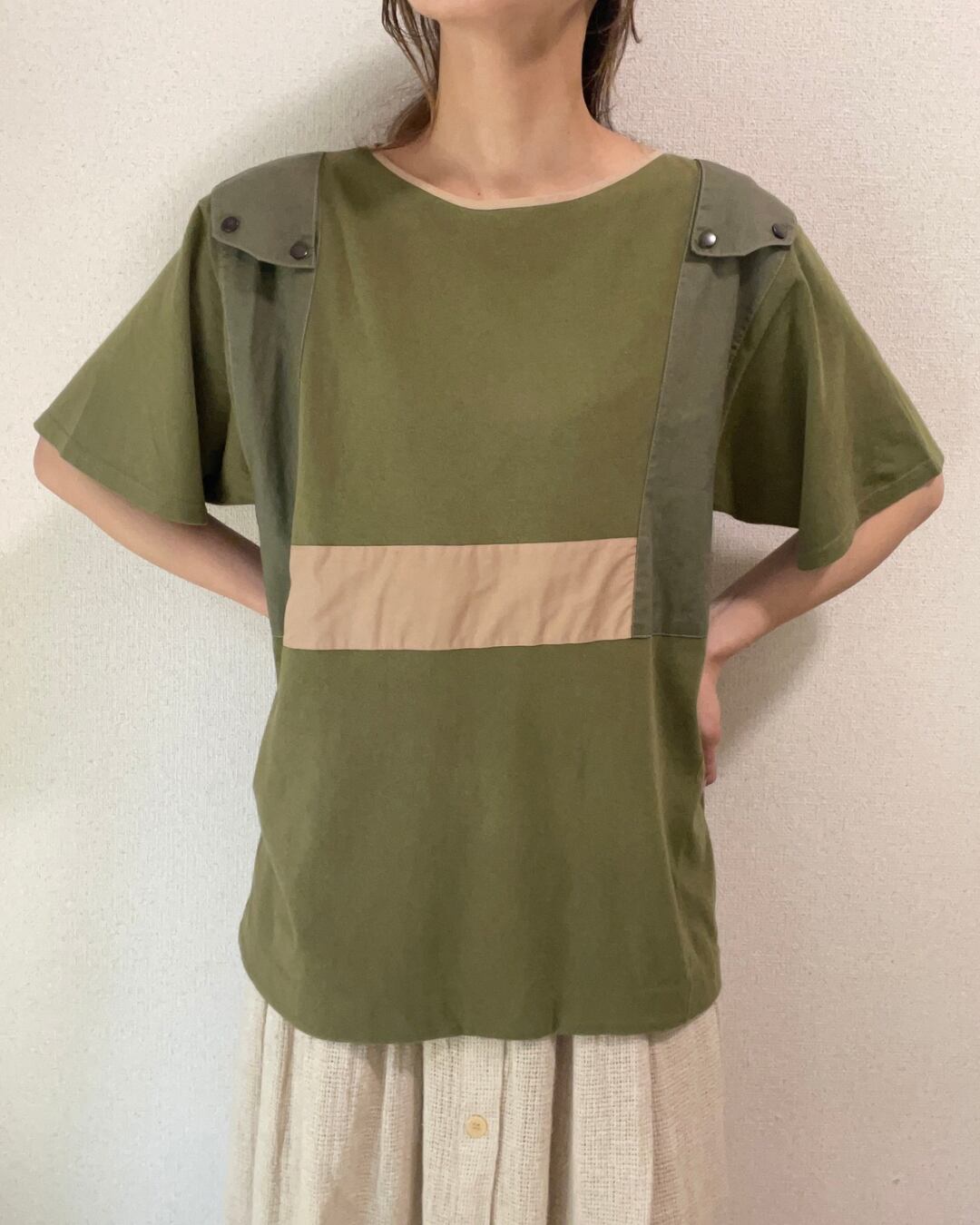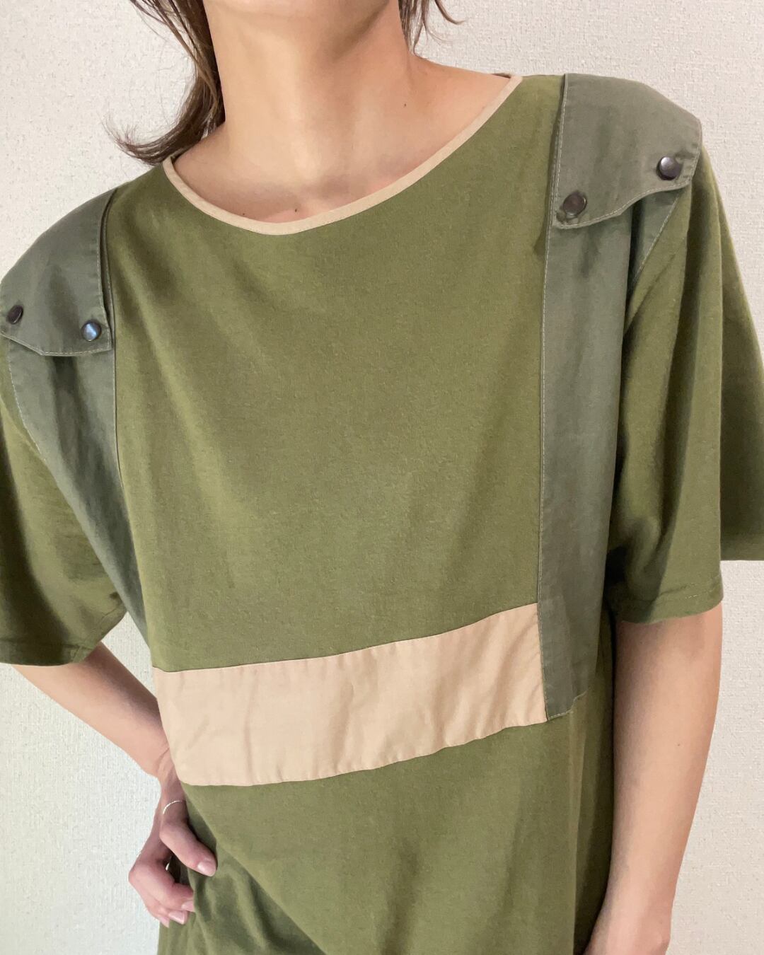 カーキ ミリタリー風 リメイク Tシャツ