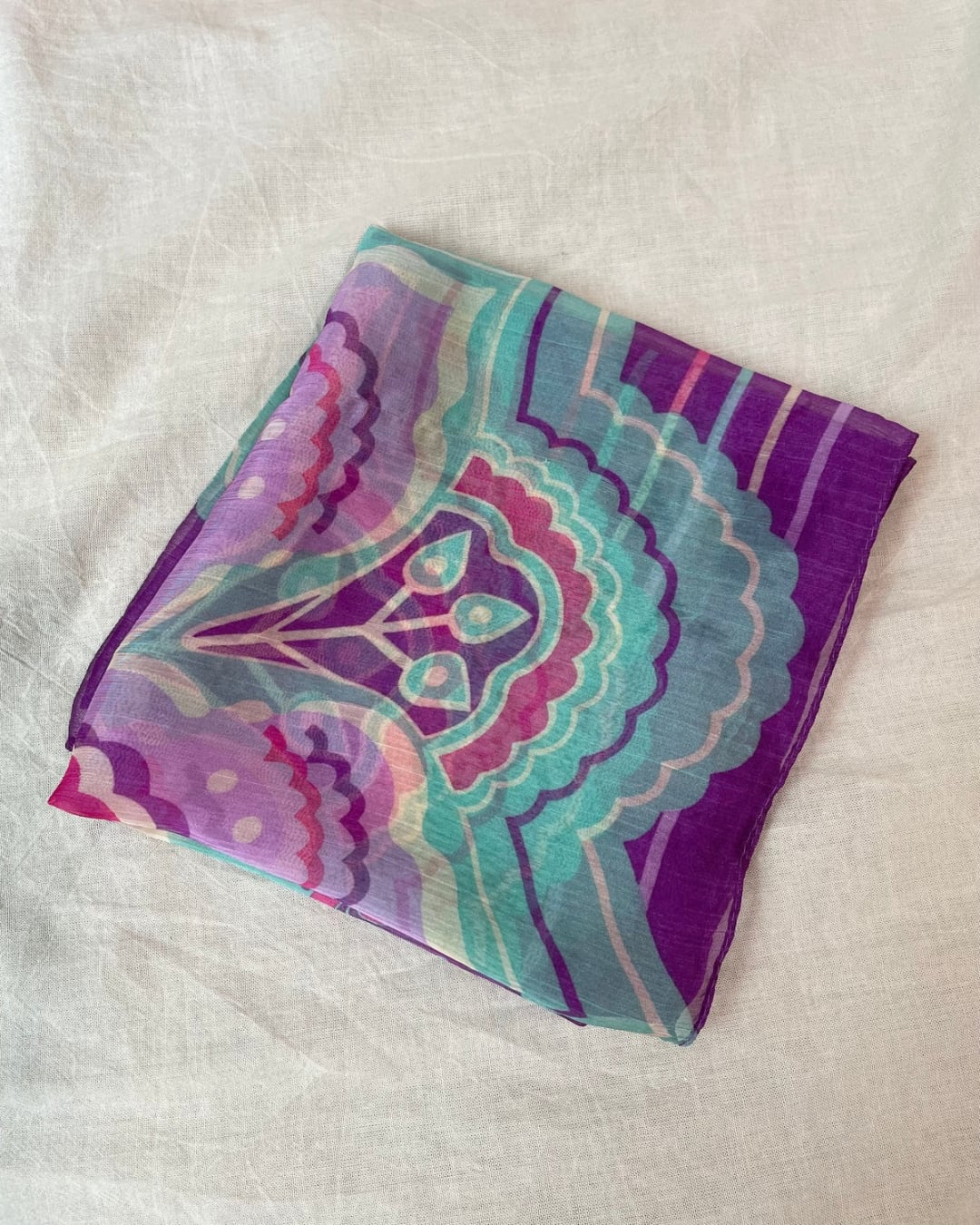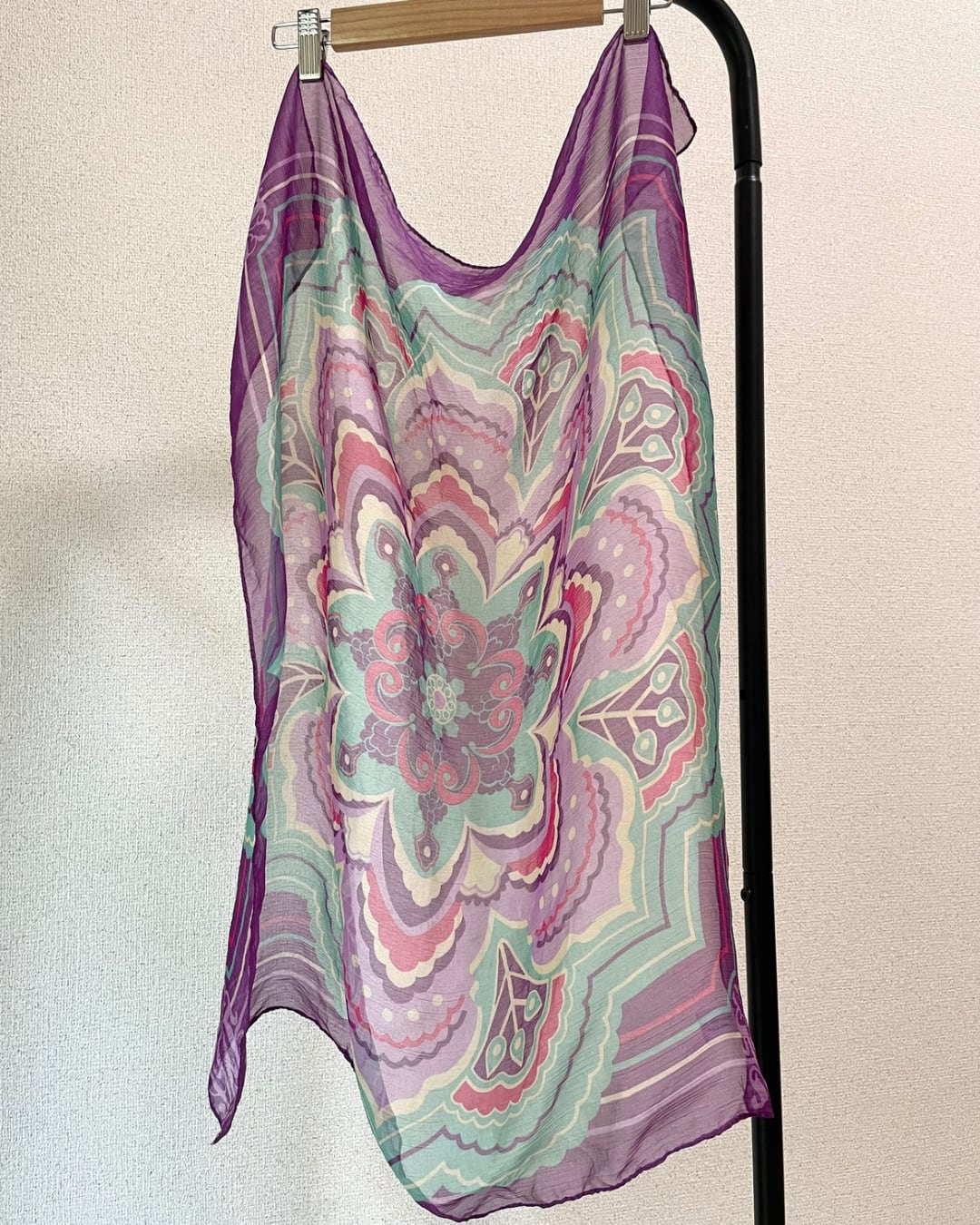 アジアンテイストなマンダラが描かれたスカーフ。