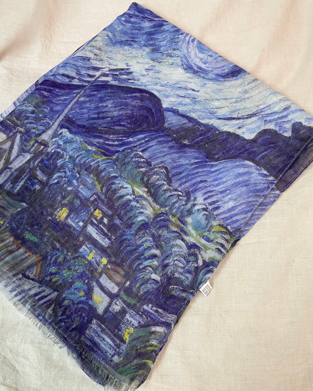 ヴィンセント・ファン・ゴッホの名画「月星夜」が全面にプリントされたストールです。