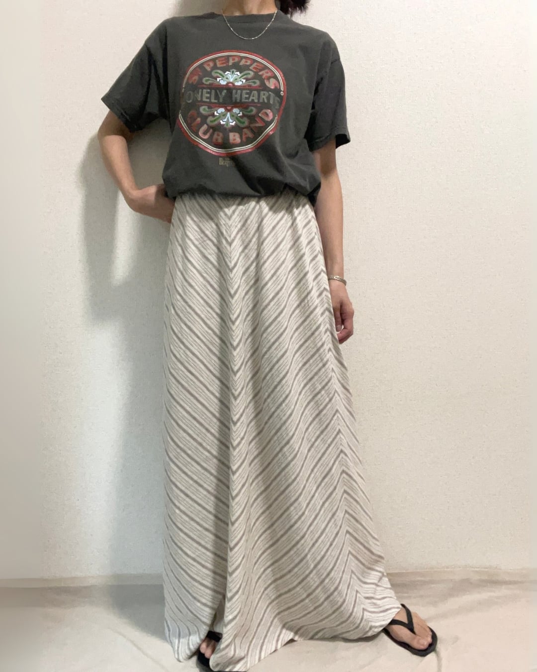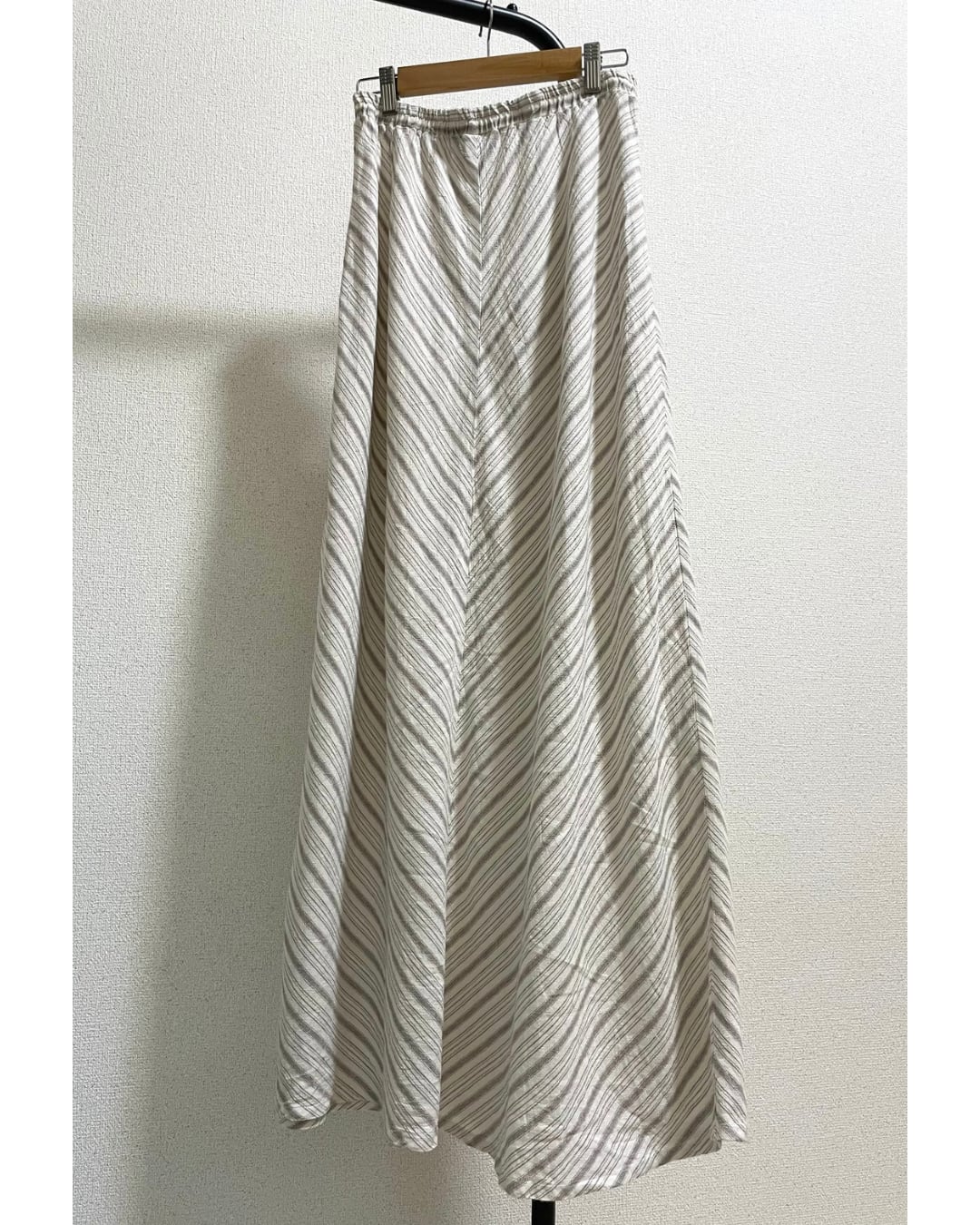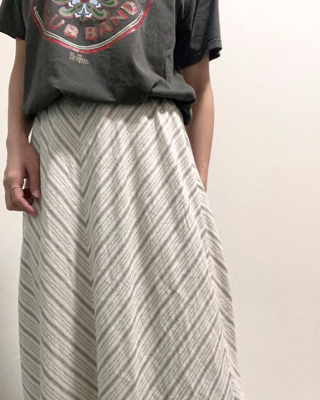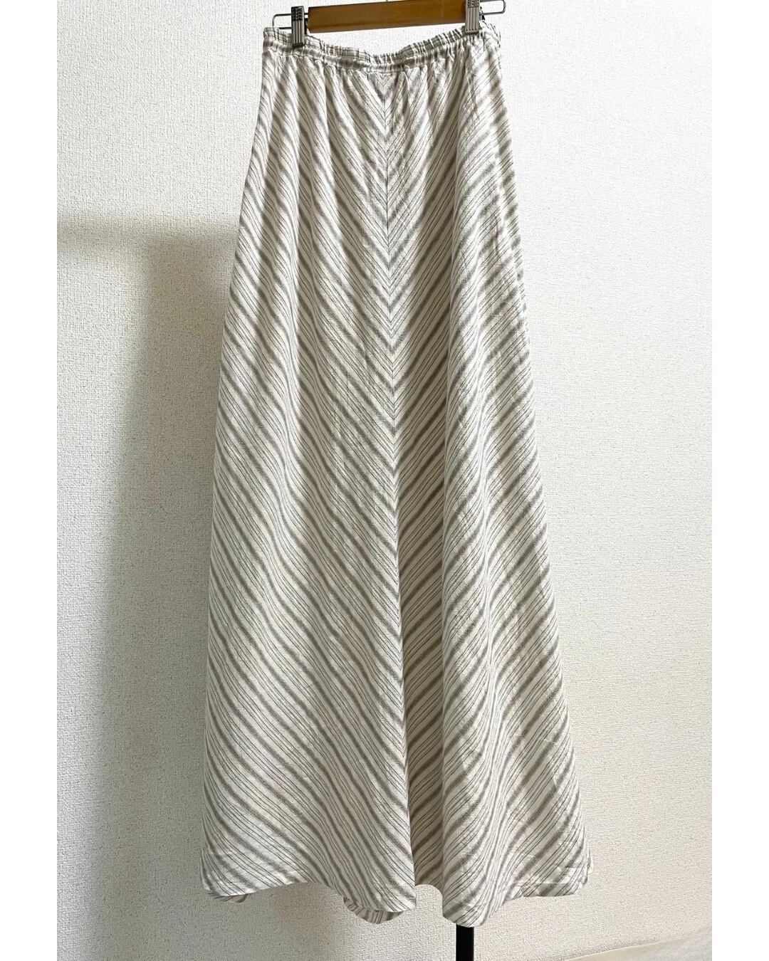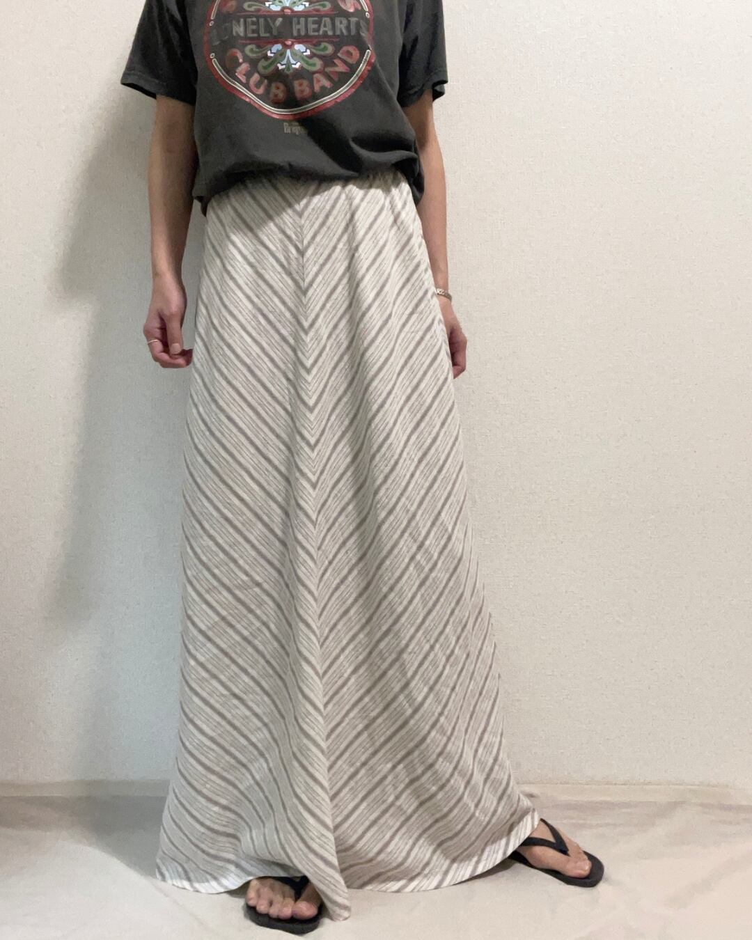 淡いトーンのマルチボーダー柄ロングスカートです。