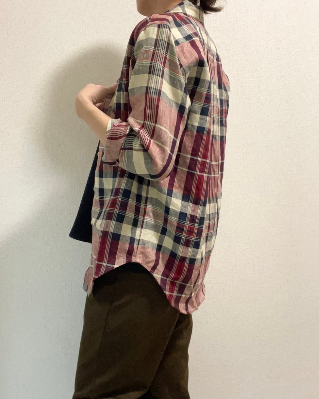 赤チェックにも色々な種類がありますが、色のトーンや柄の大きさにこだわって選びました。