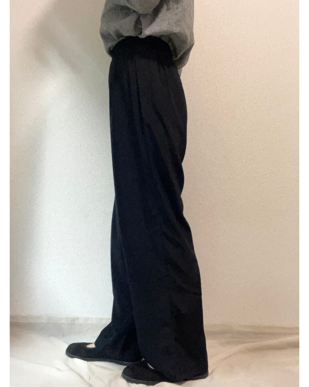テロンとした柔らかい素材のシンプルなイージーパンツです。