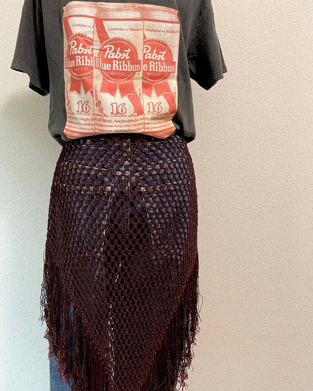 メッシュ フリンジ ニット スカート