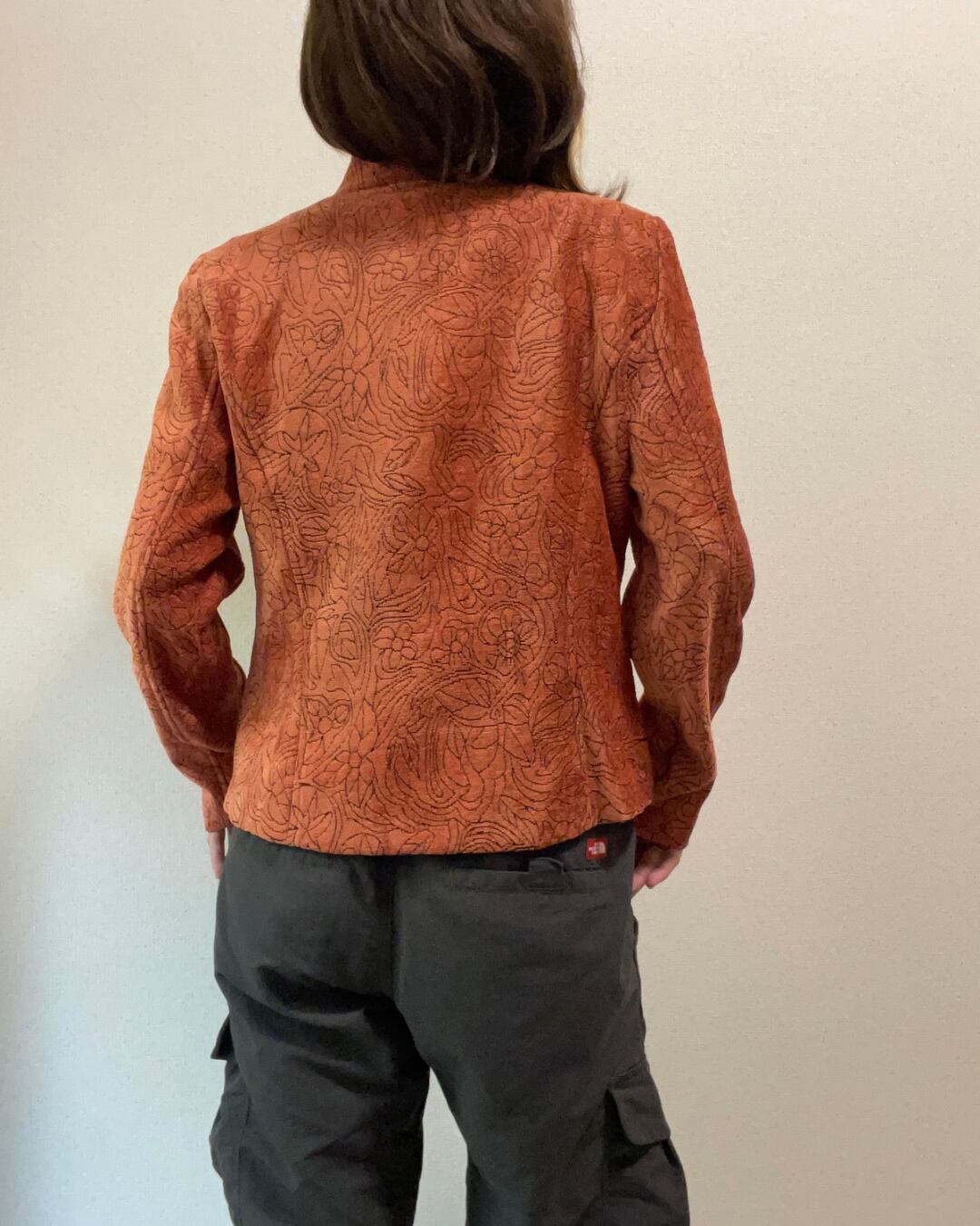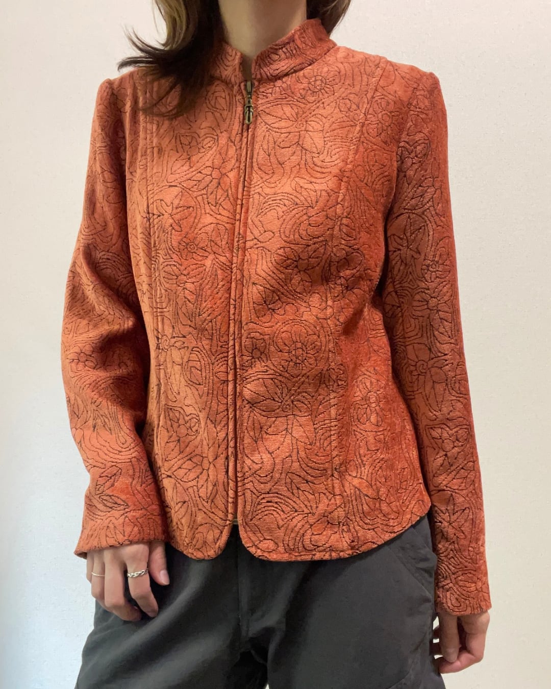 ジャガード織りの生地がとても素敵なジャケット。