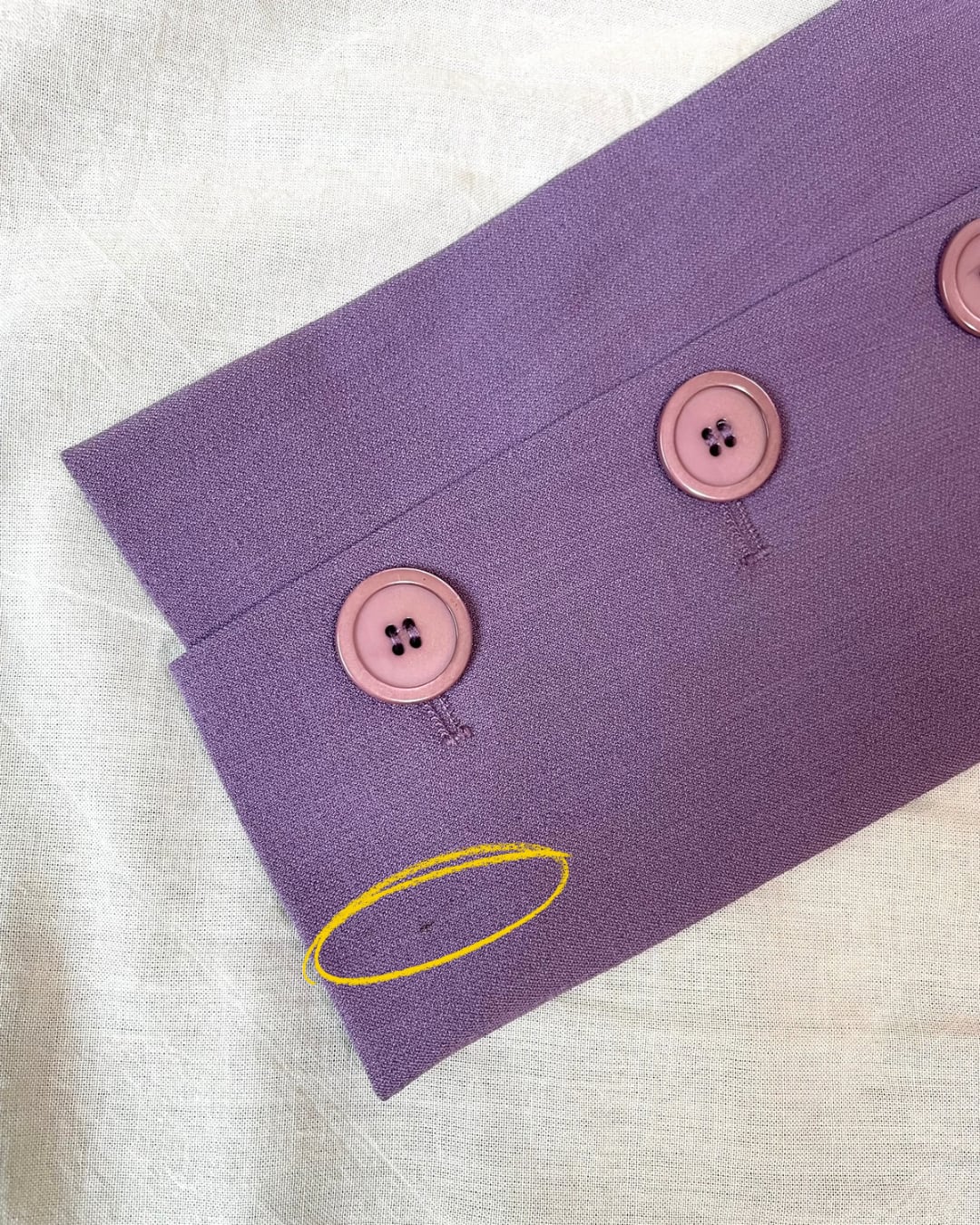 袖口には3つのボタンが並んでおり、シンプルなようで程よく遊びの効いたデザイン。