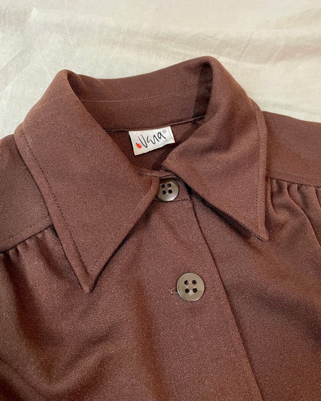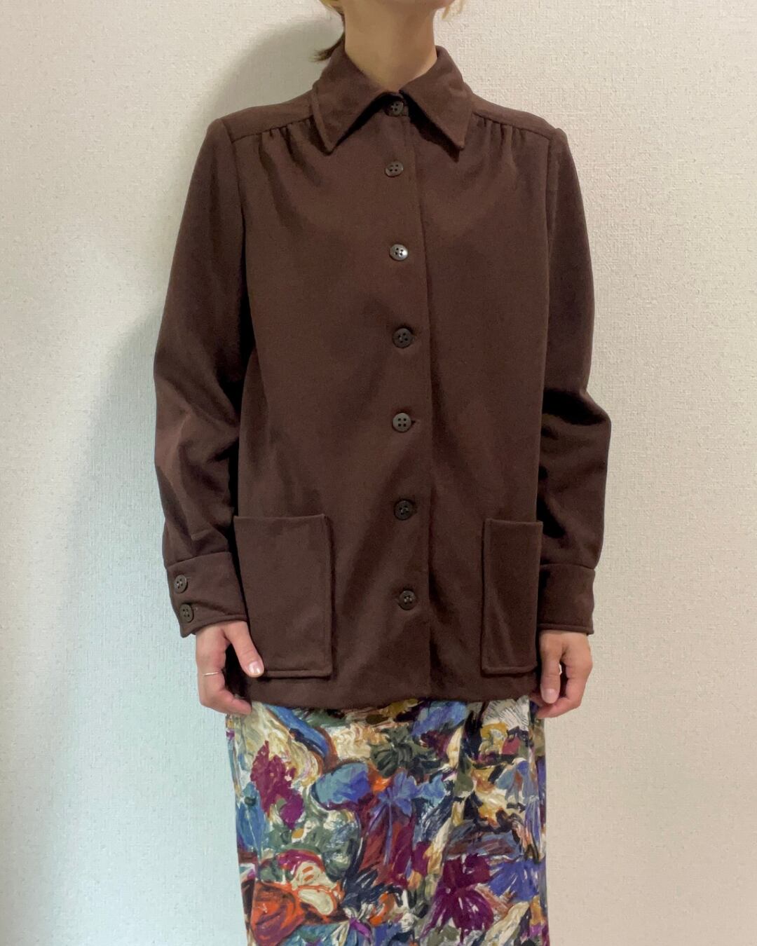 70s ダークブラウン ポリシャツ ジャケット
