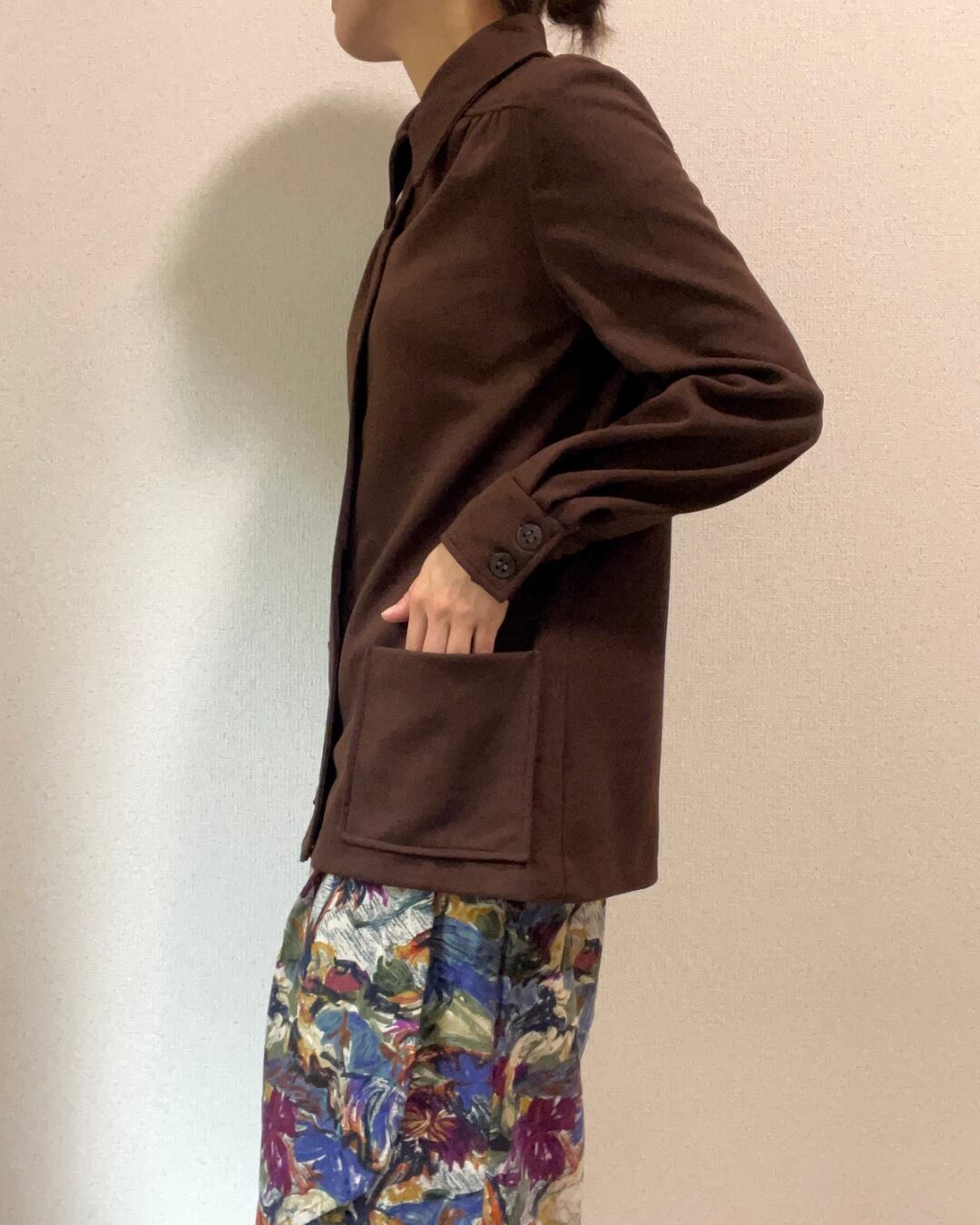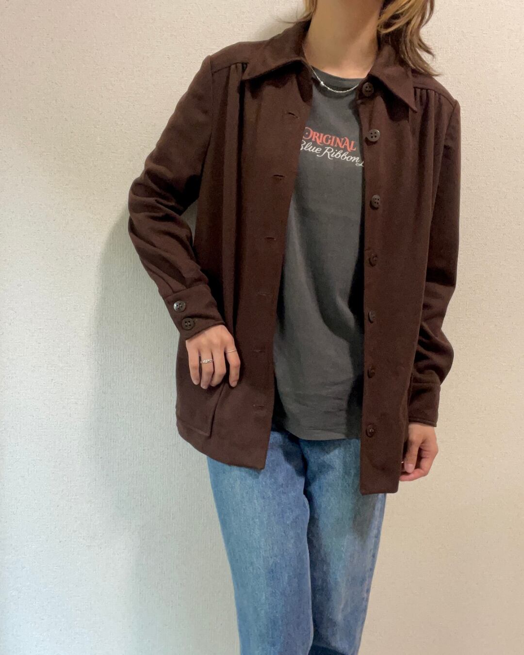 深いダークブラウンの色味は今年らしさもありつつ、古着ならではの渋さがあります。