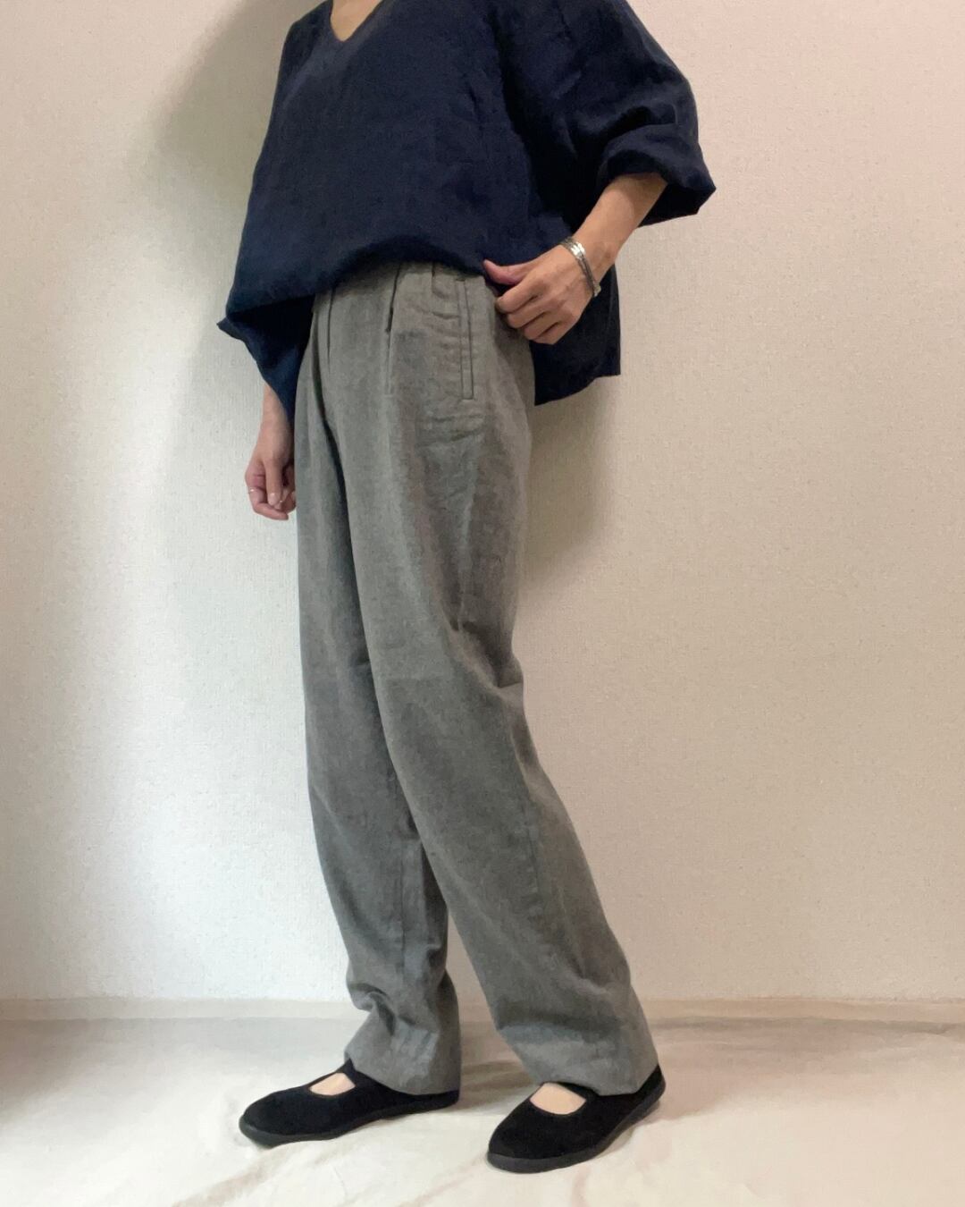 フロント2タックのゆったりとしたシルエットで、程よくリラックス感のある履き心地です。