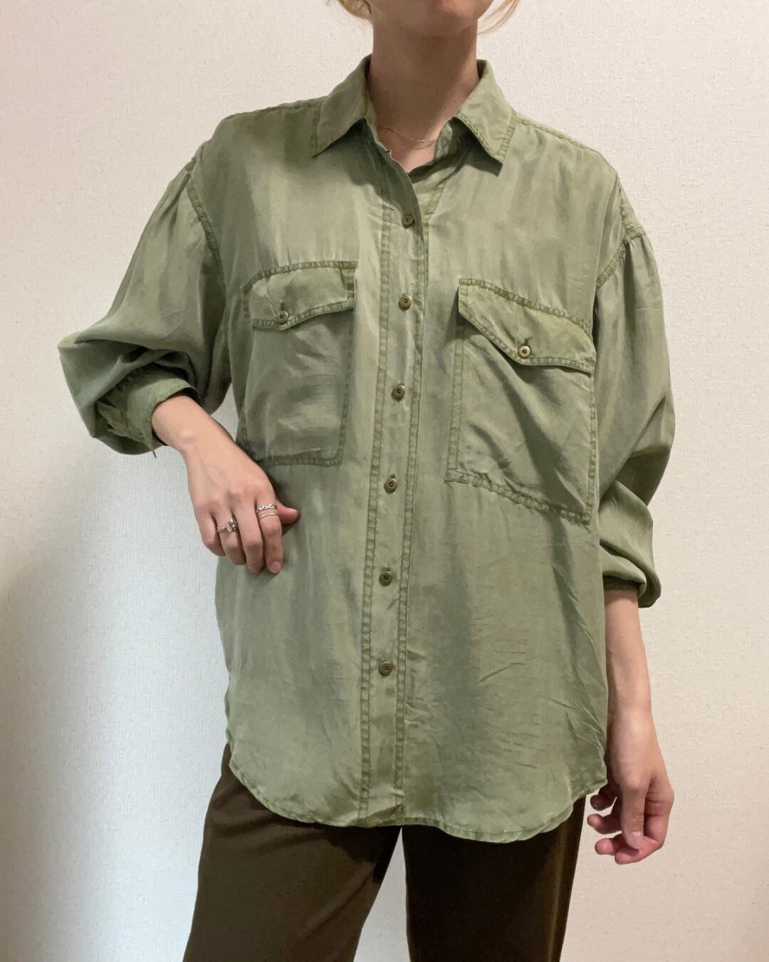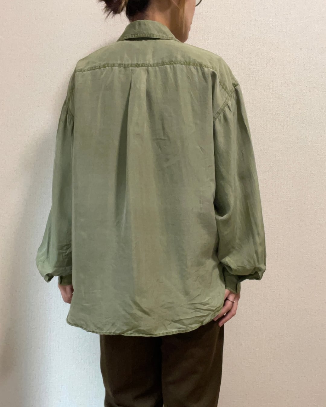 スモーキーな色合いが素敵なシルク100%のシャツです。