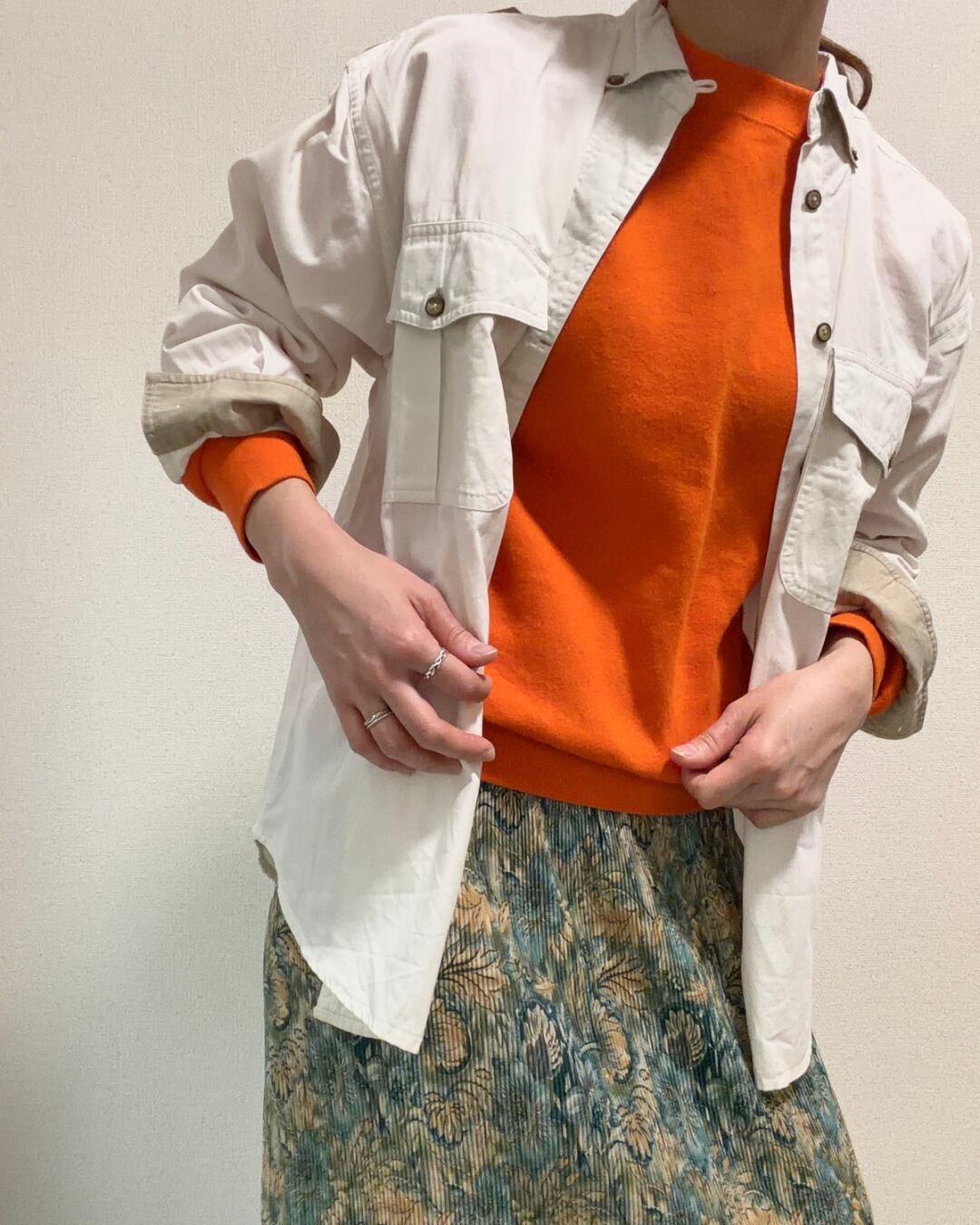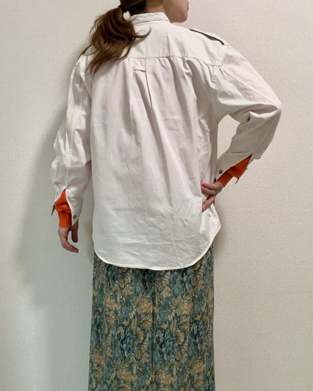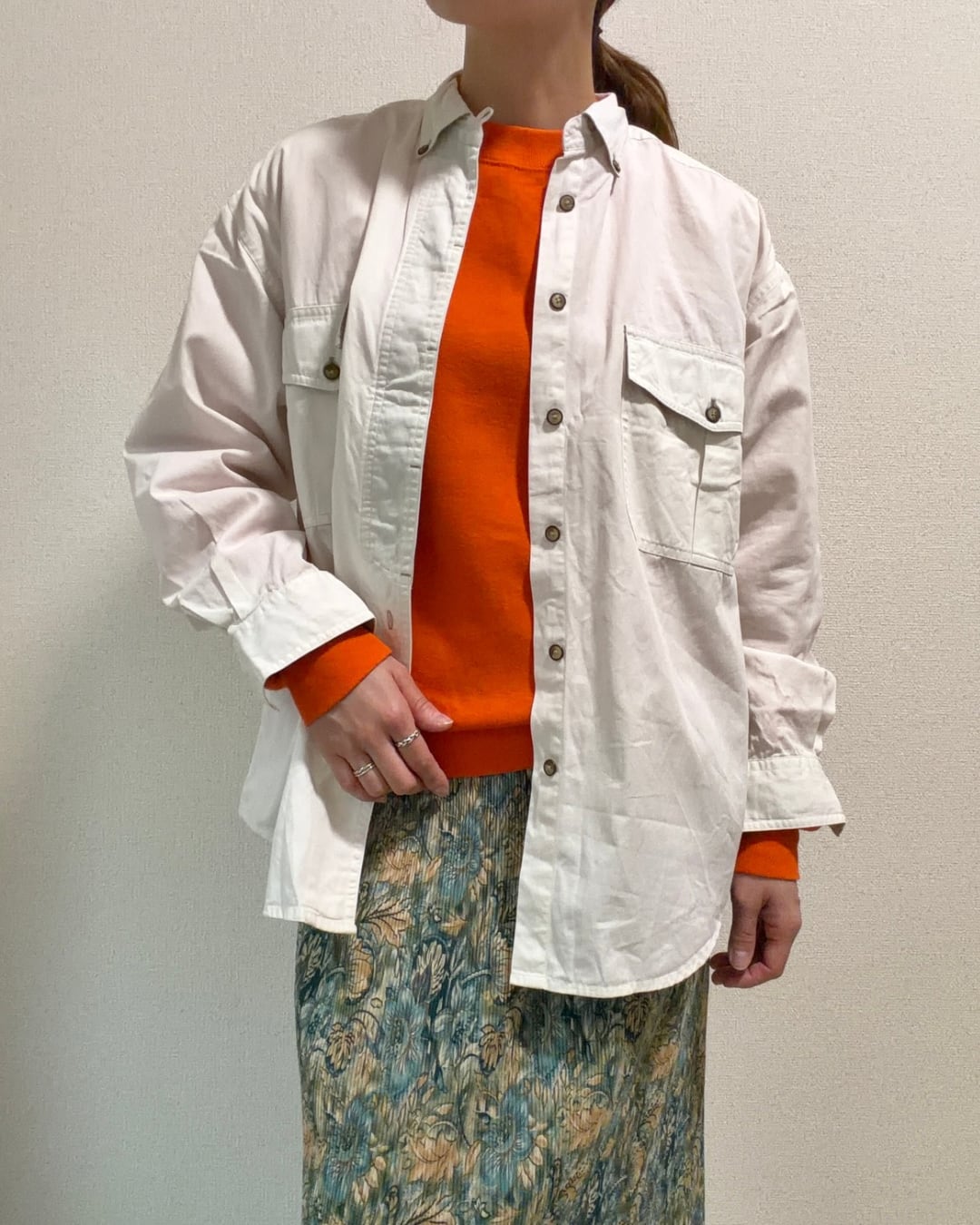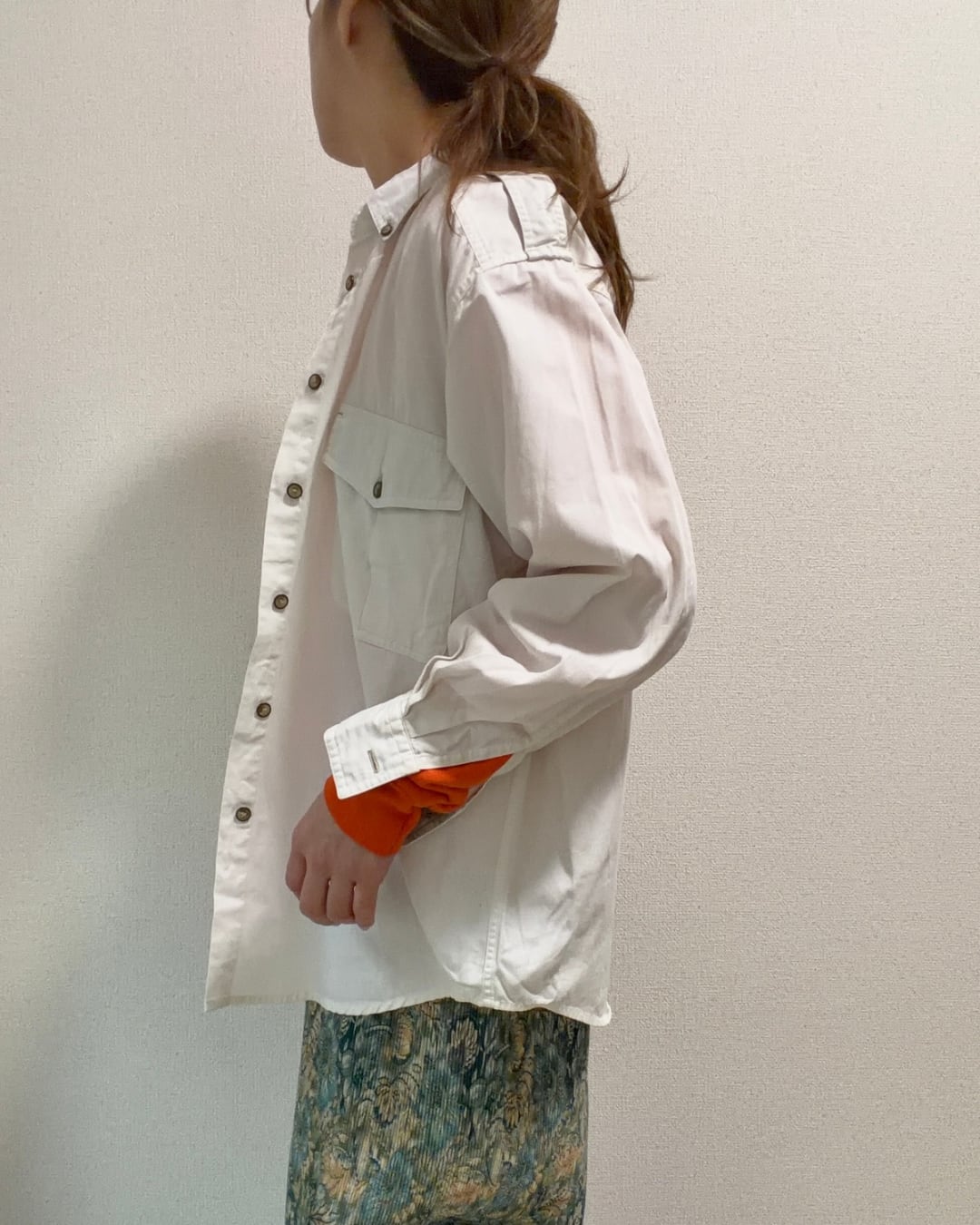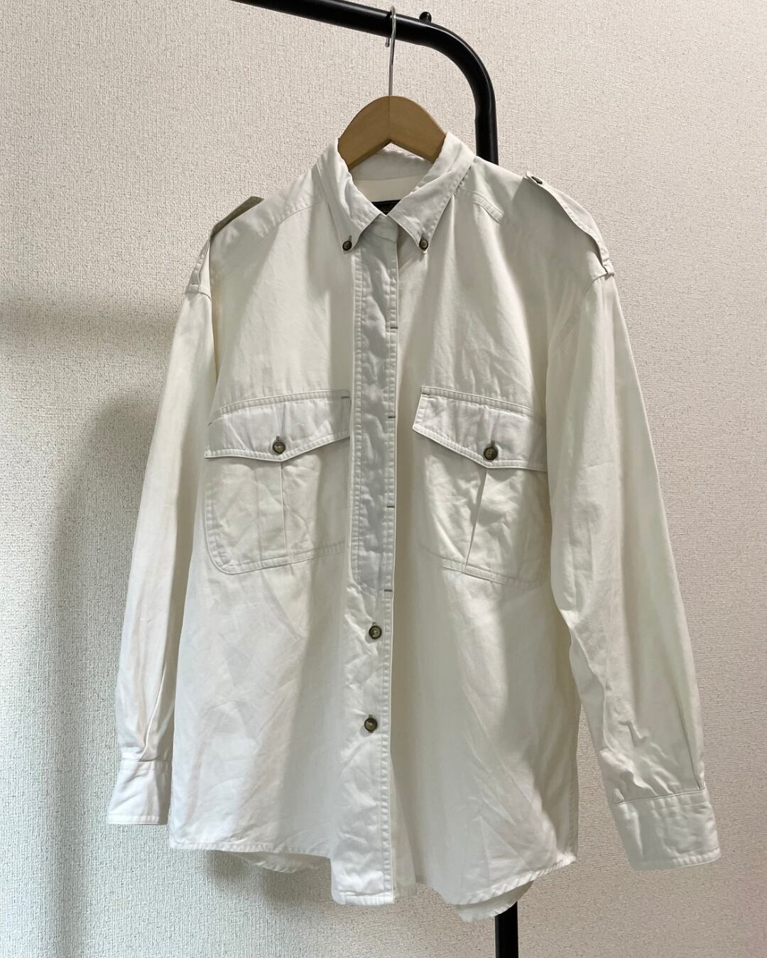 大きめの胸ポケットや肩章など、オーセンティックなディテールが古着らしさのある一品。