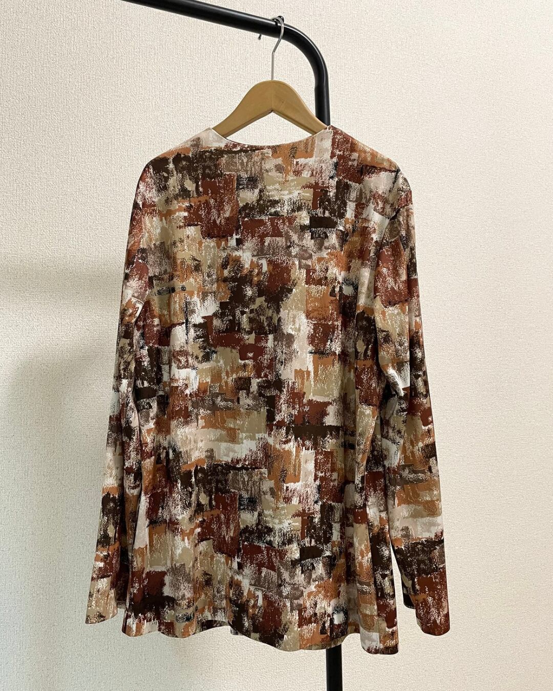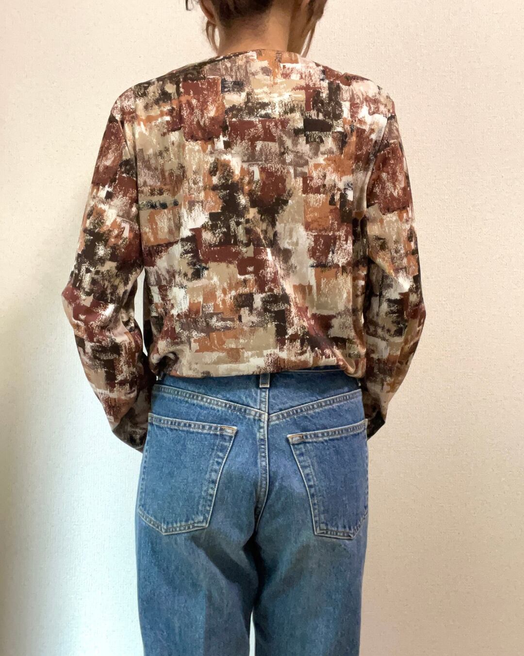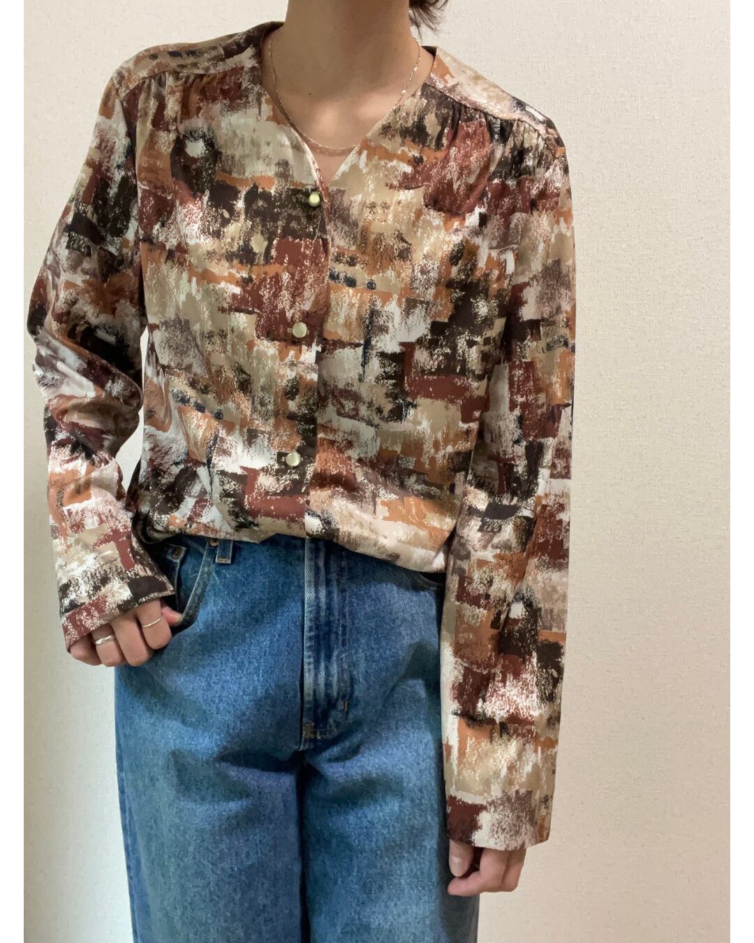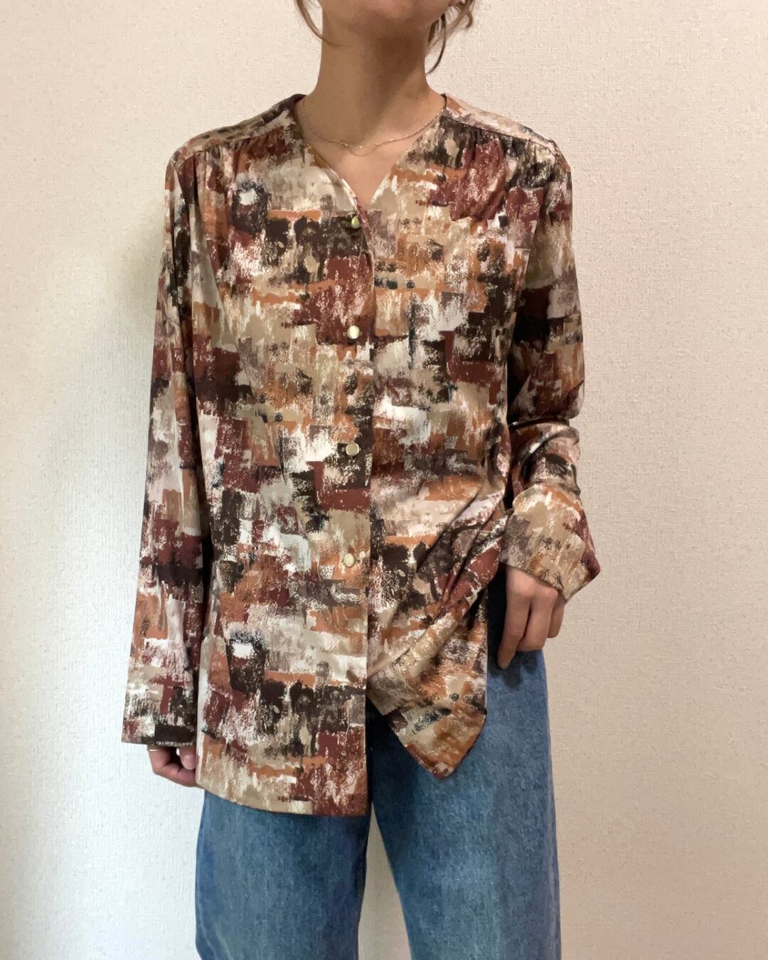 ブラウン系のカモフラ柄がレトロな雰囲気のブラウス。