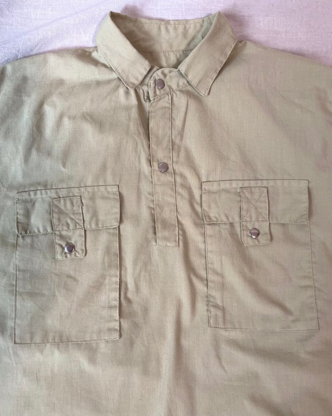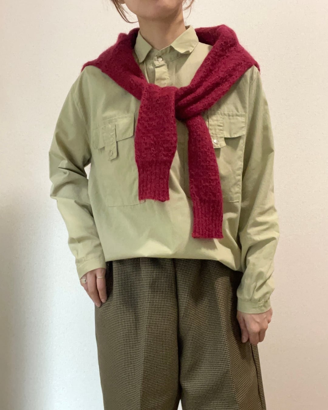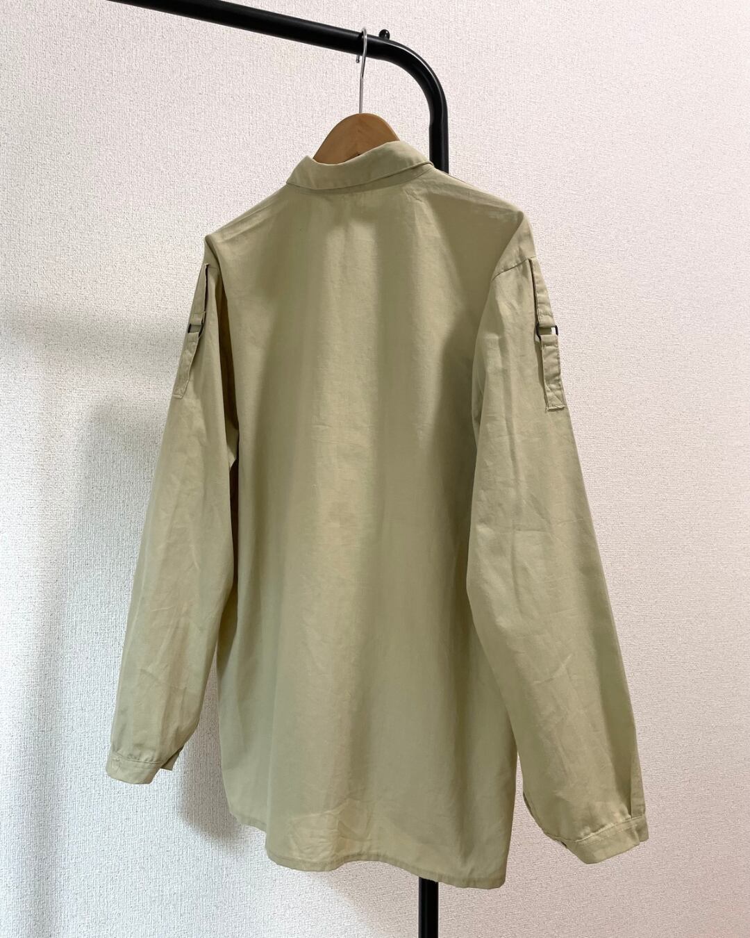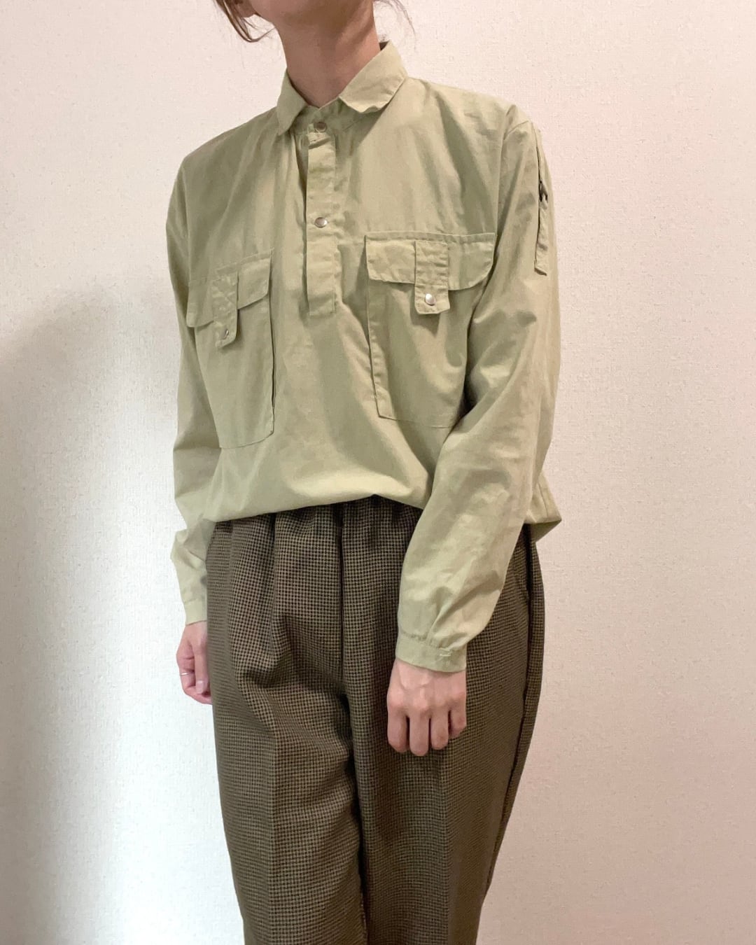 落ち着いたサンドベージュの色味が素敵なプルオーバーシャツです。