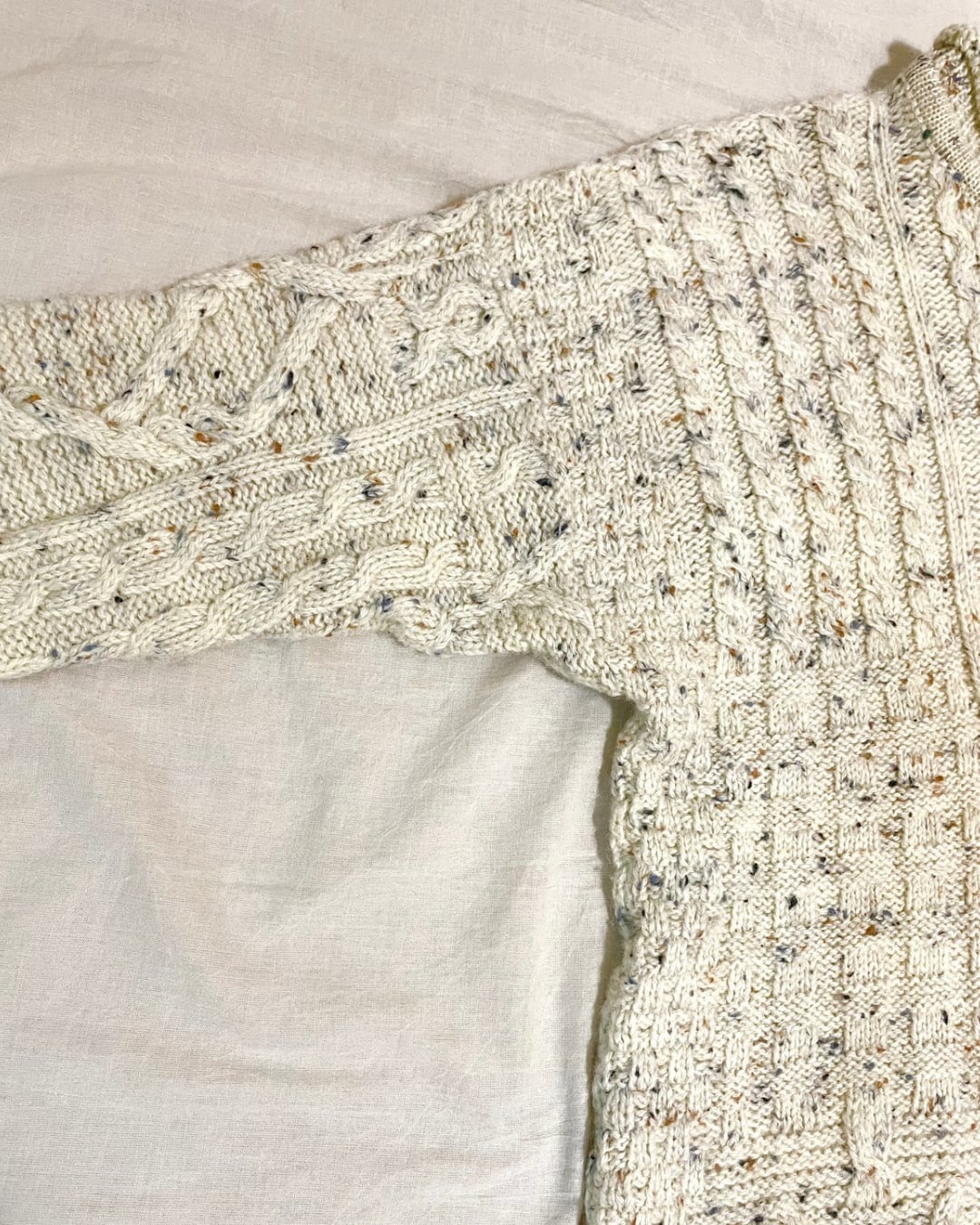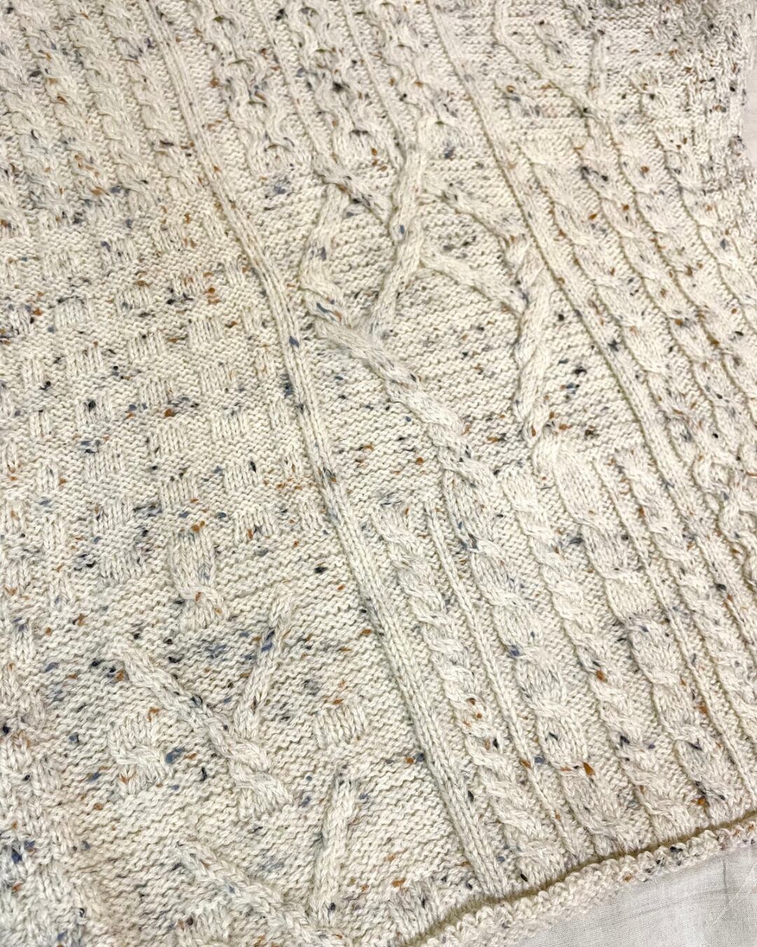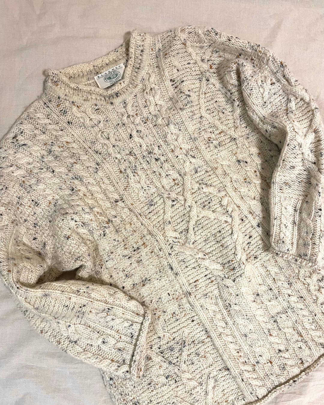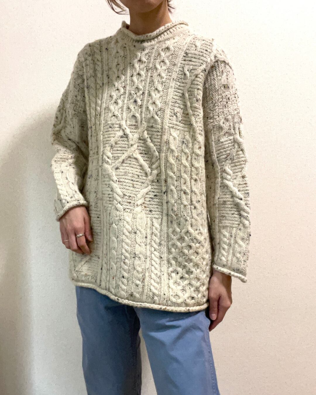 秋冬には毎年手に取りたくなる、アイボリーカラーのアランニットです。