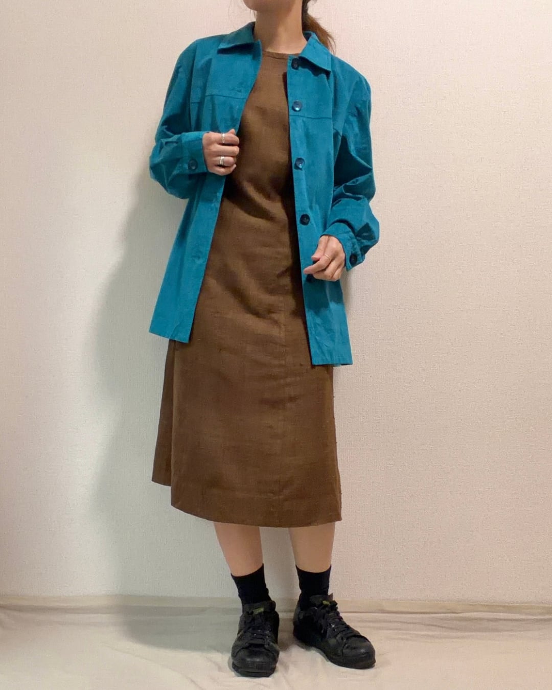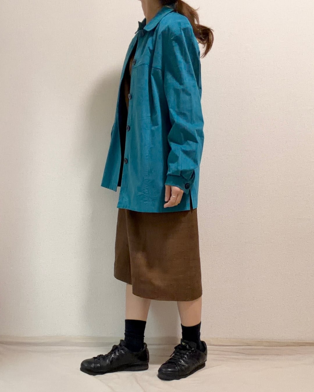 柔らかいフェイクスエード生地が使われており、上品に大人っぽく着こなせる色の見え方。