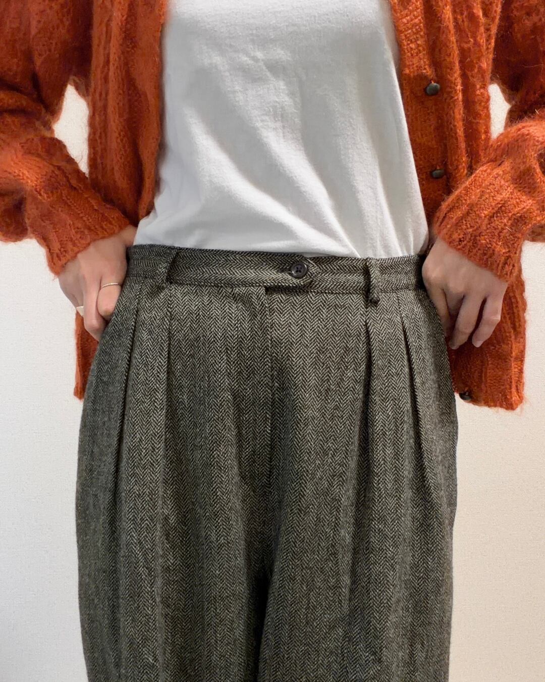 "LAUREN" ヘリンボーンウール スラックスパンツ