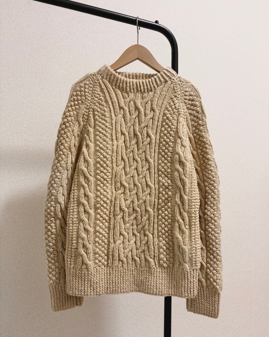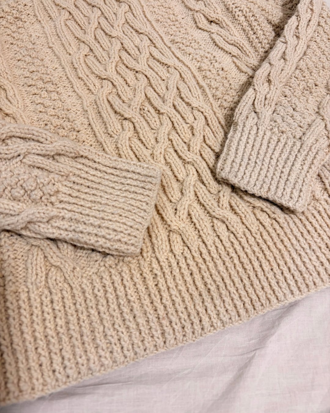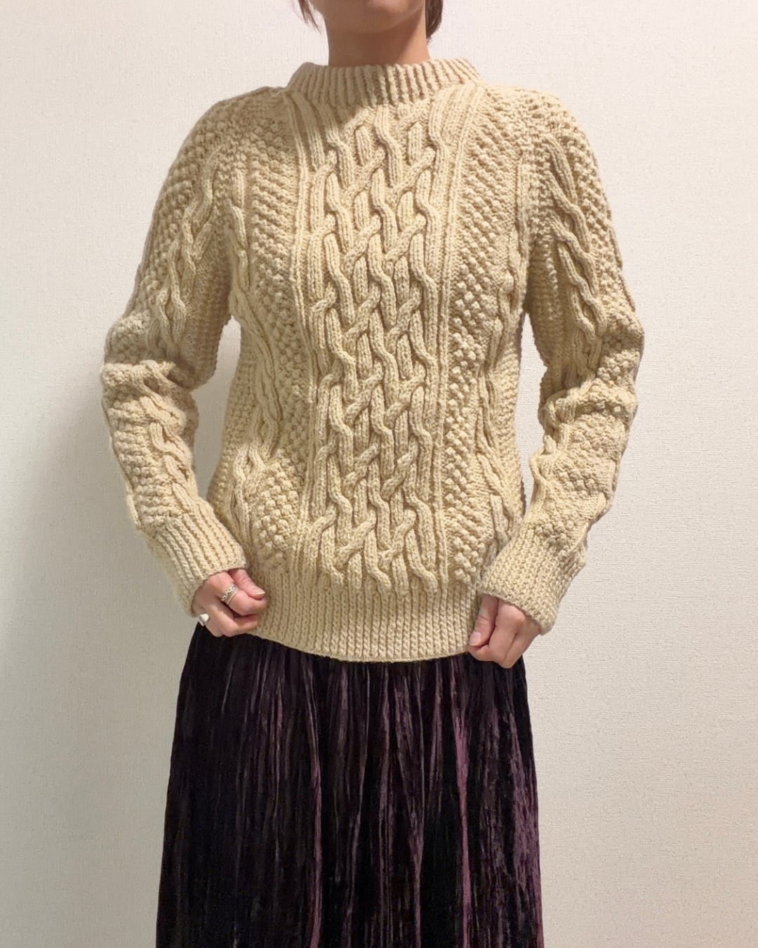 アイボリー ケーブル柄 アランニット