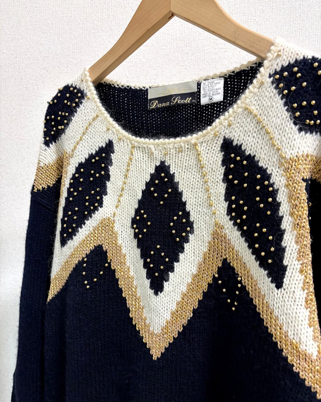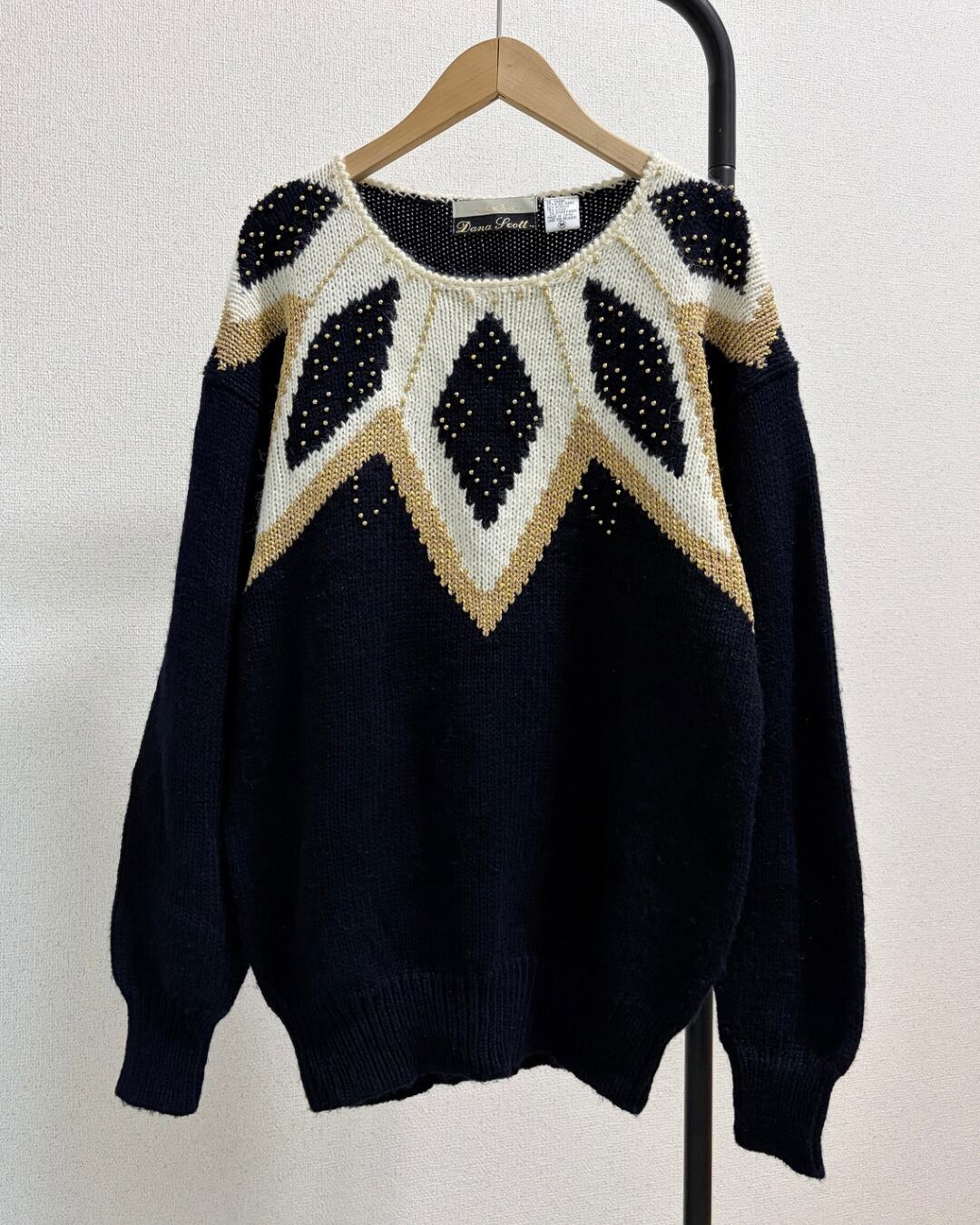 80s ビーズ装飾 デザインニット プルオーバー