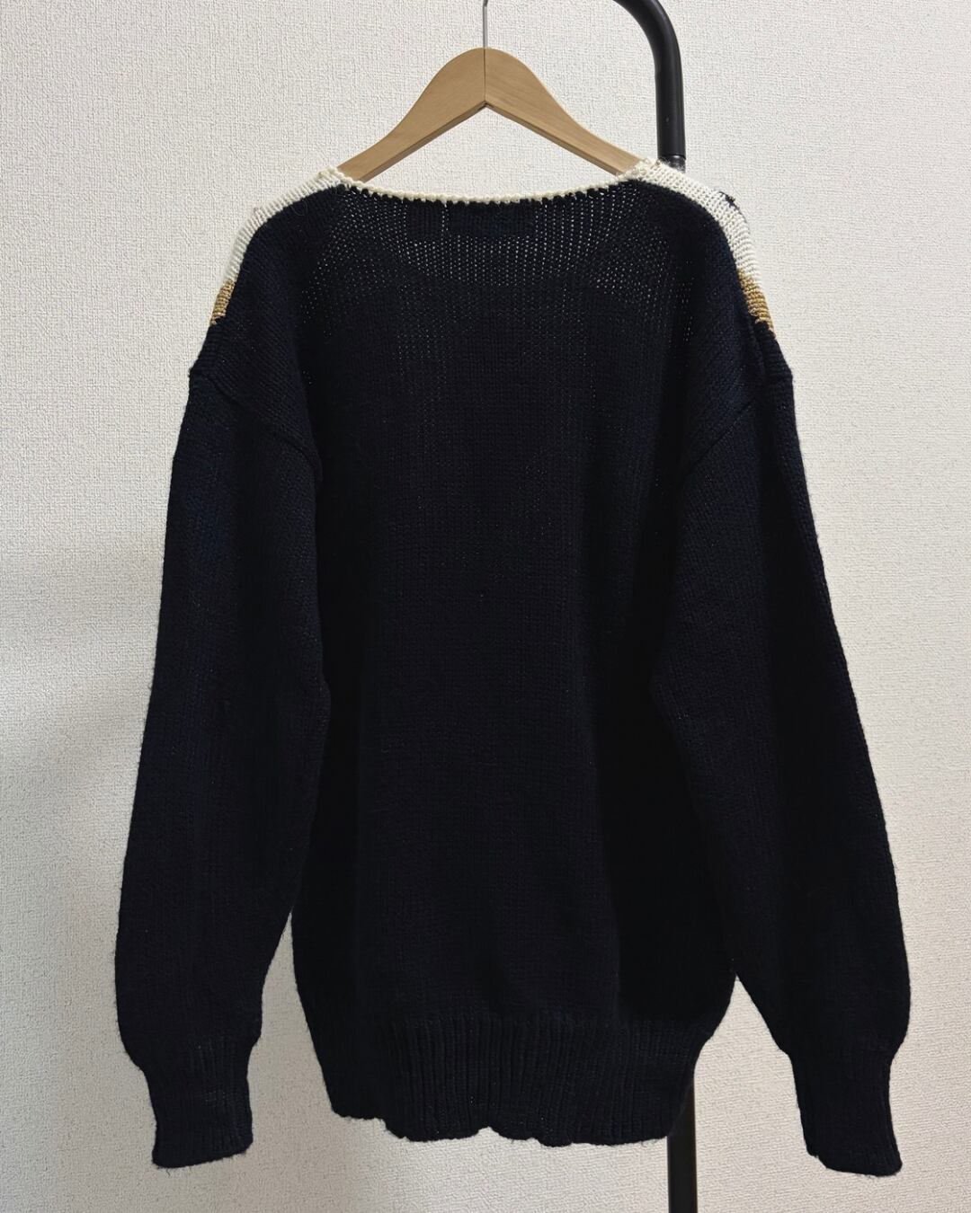 80年代ごろの華やかさ、スタイリッシュさが漂うデザインのニットプルオーバー。