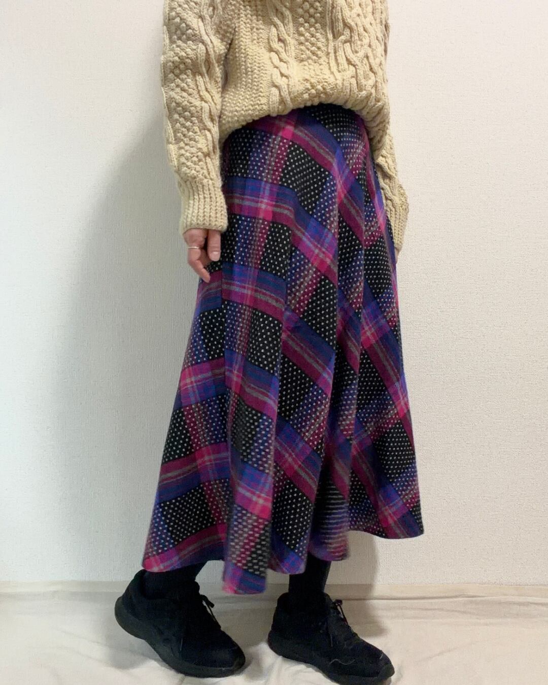 USA製 80s チェック柄 フレアスカート