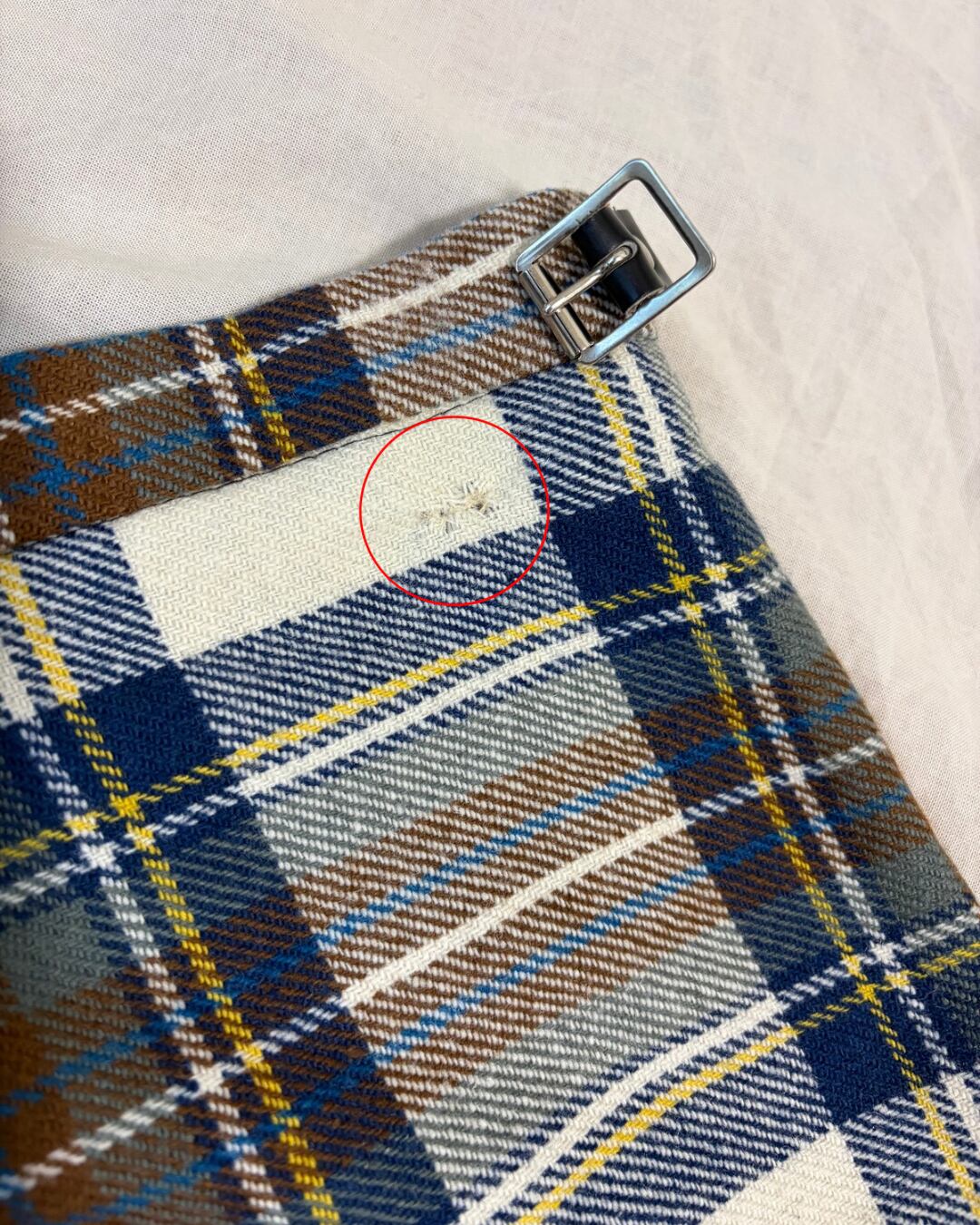 使用感はあまりなく全体的にきれいですが、ウエストの左側の生地に小穴があります。