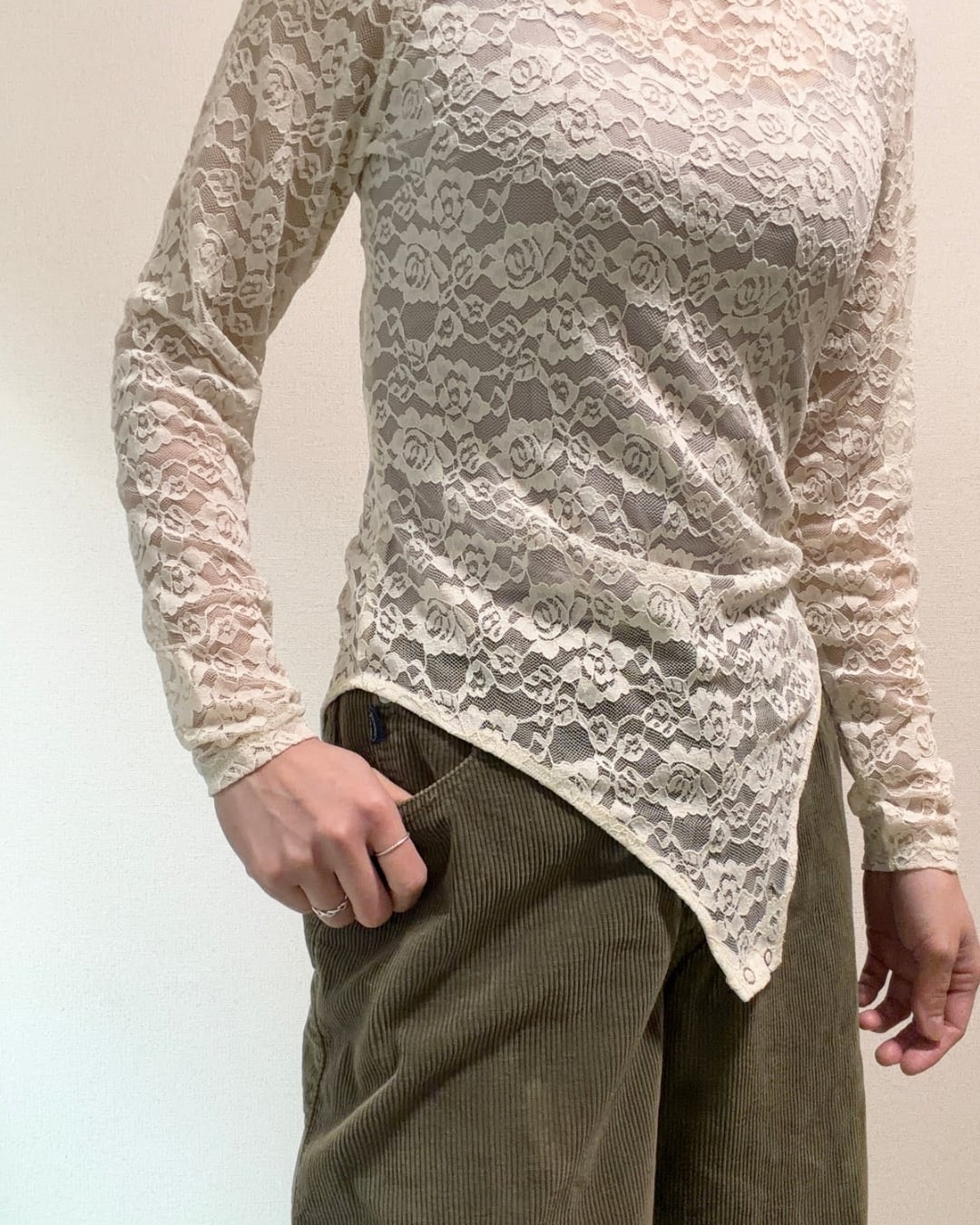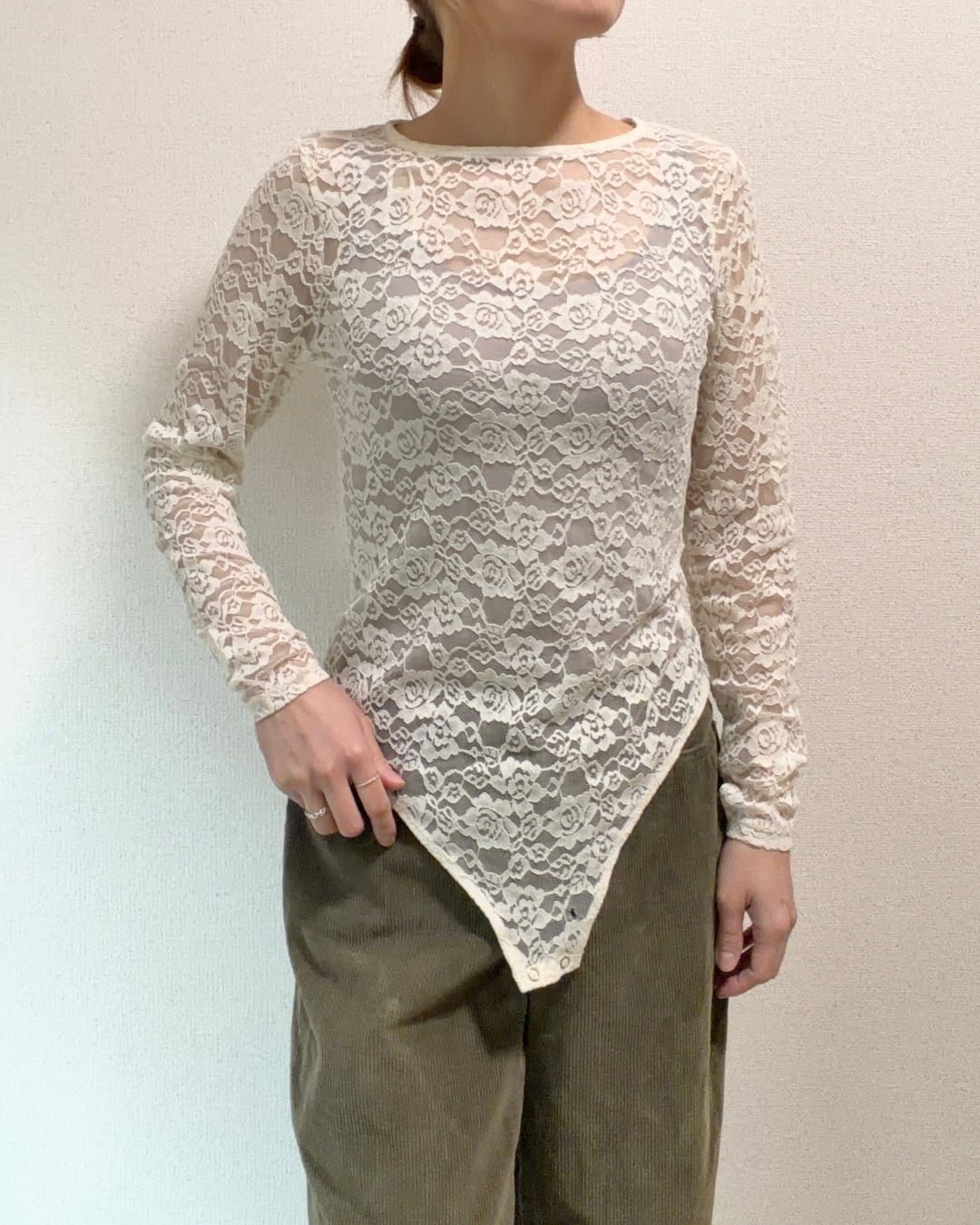 伸縮性があり、横に伸びやすいナイロンレースが使われています。