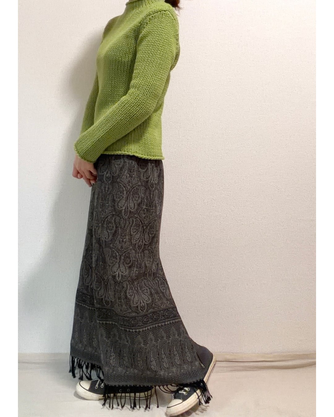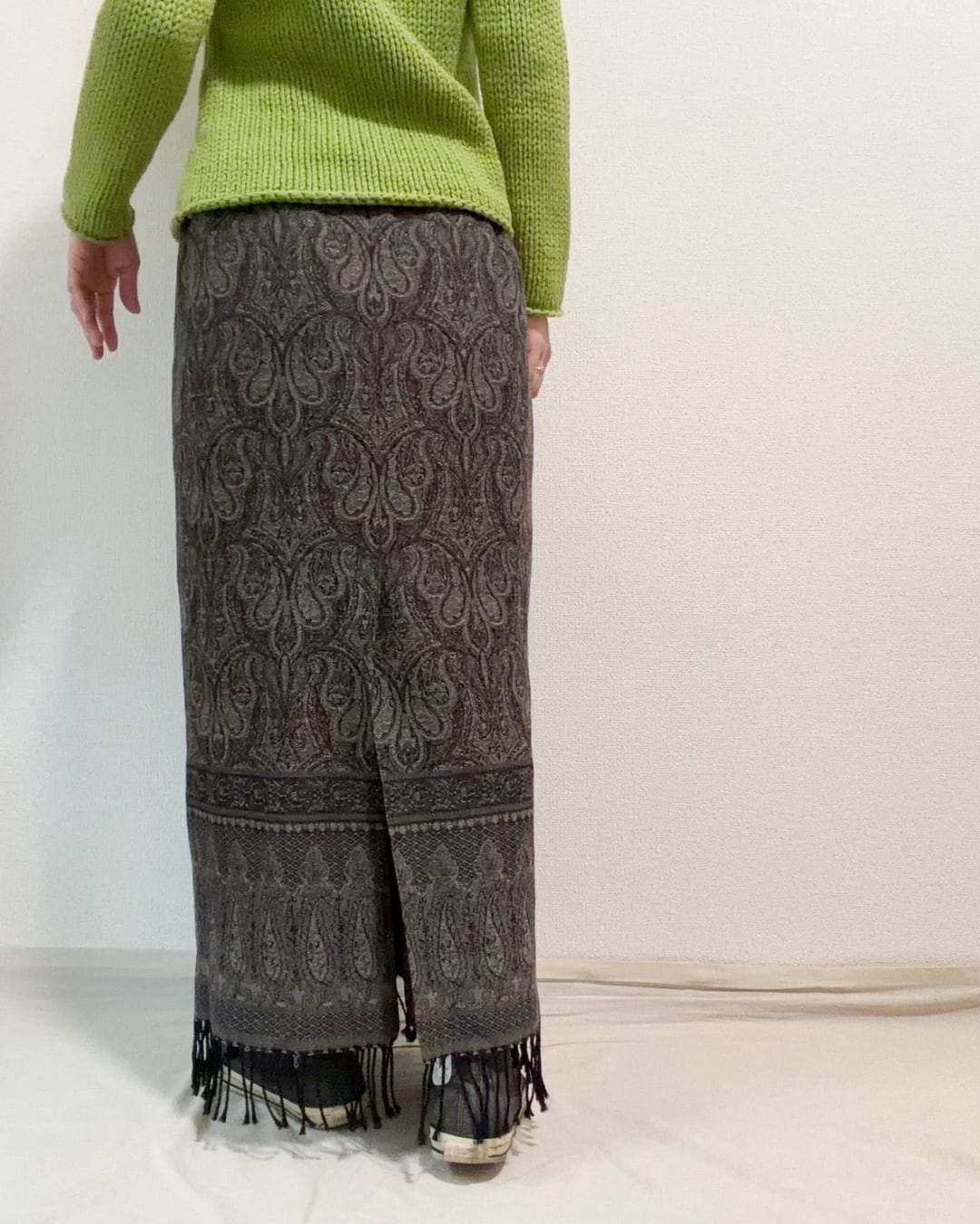 "Talbots" ペイズリー柄 フリンジスカート