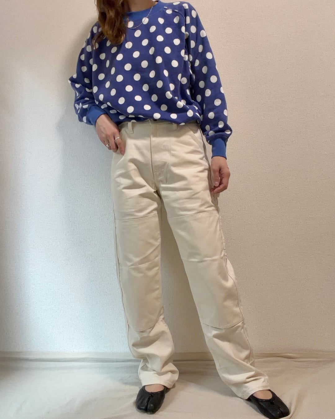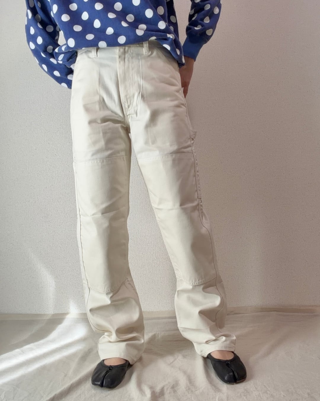 コーディネートに取り入れやすく、ワークウェアの無骨さも感じられる生成りカラーがとても素敵です。