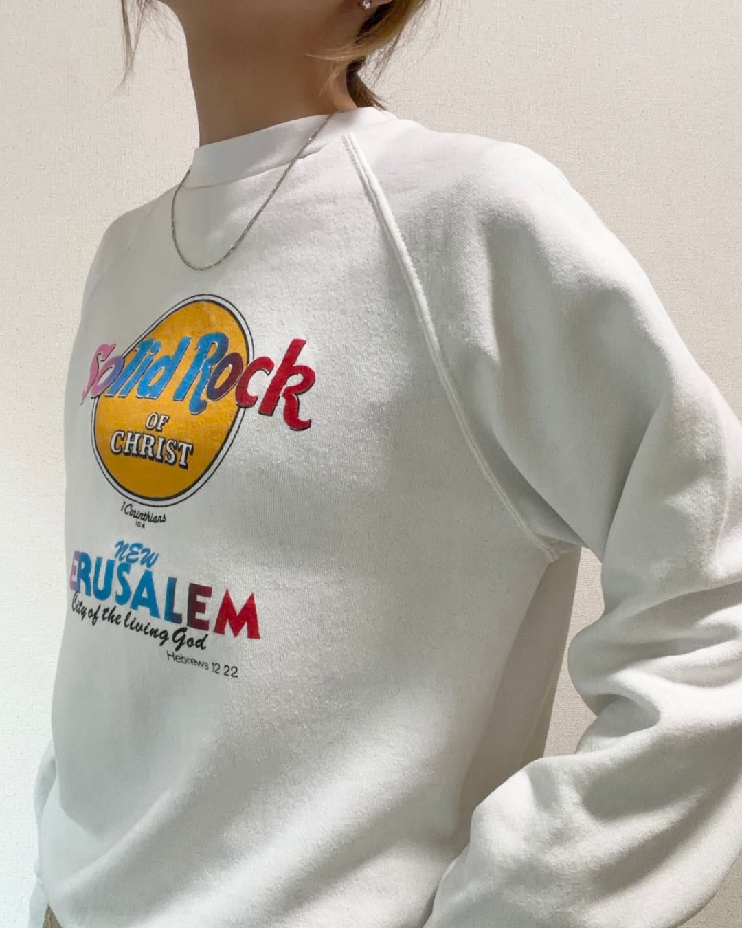 古着スウェットの中でも根強い人気の「Hard Rock Caffe(ハードロックカフェ)」のロゴをパロディーにした、おもしろいスウェットです。