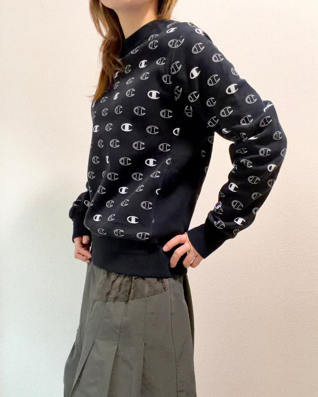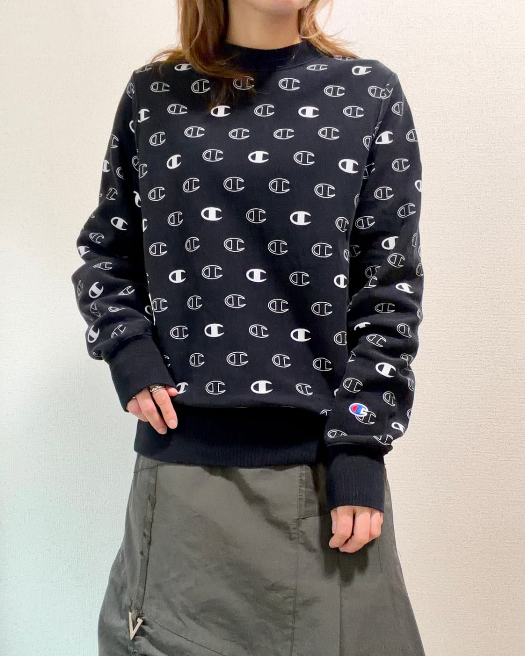 "Champion" 総柄 リバースウィーブ スウェット