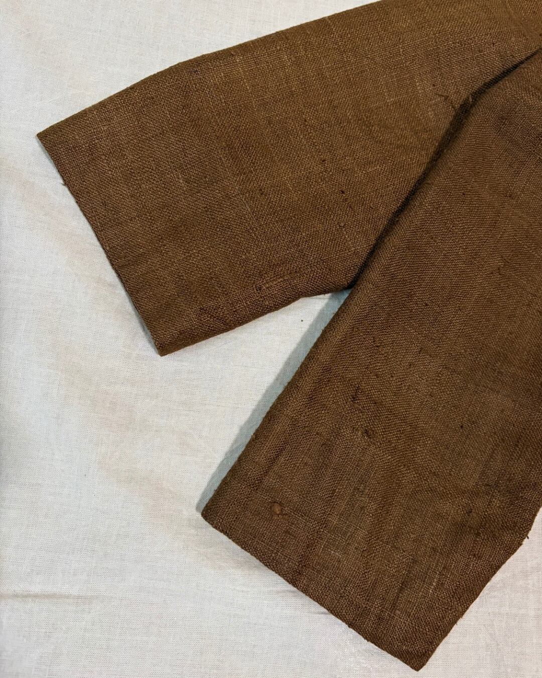 素材はおそらくリネンが使われており、表面には所々に凹凸やネップが見受けられます。