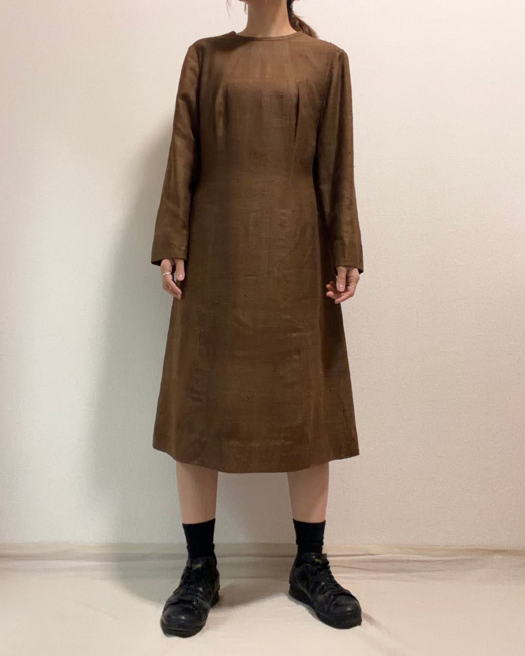 70s リネンブレンド サックワンピース