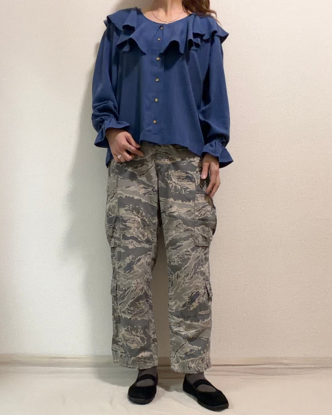 「デジタルタイガーカモ」と呼ばれるこの柄は淡いトーンの色合いが多く、普段着として取り入れやすい雰囲気があります。