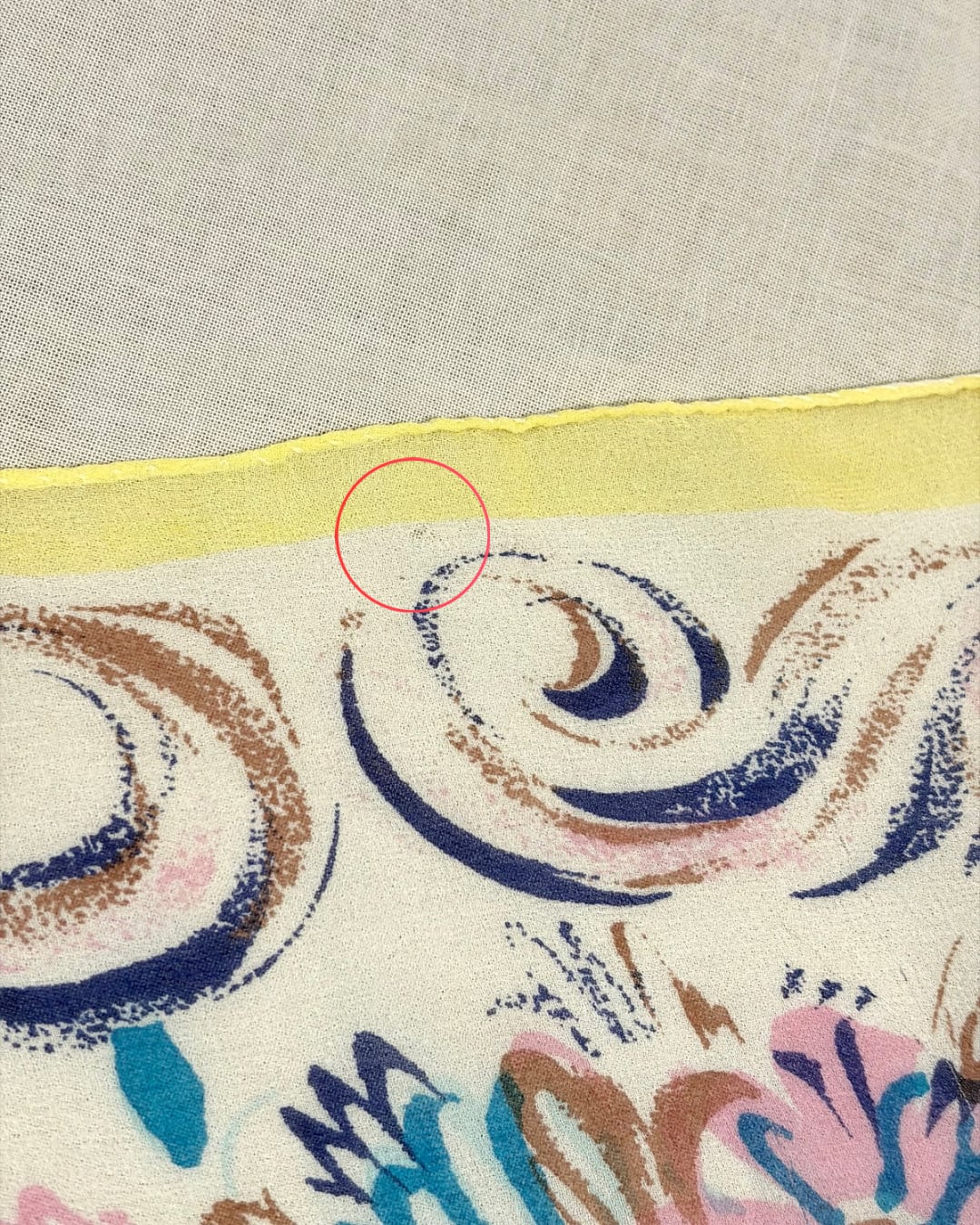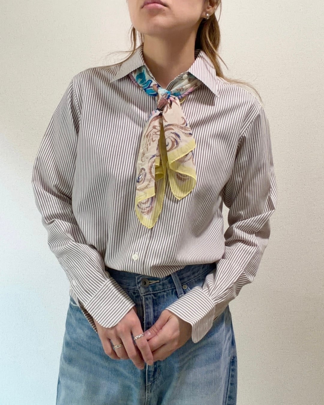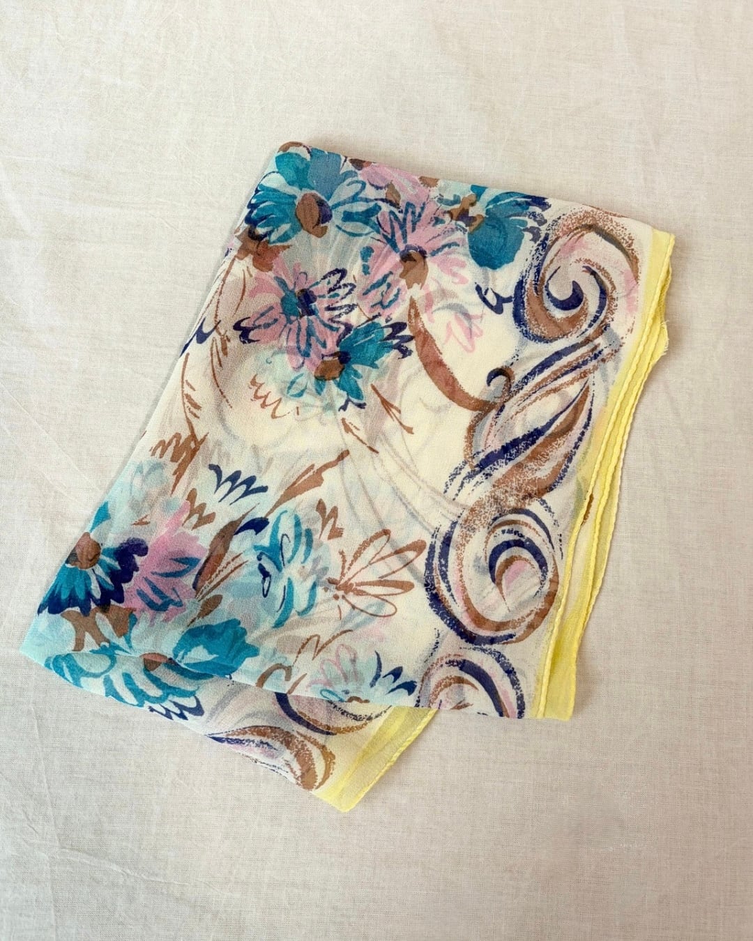 明るい色づかいが素敵なスカーフです。