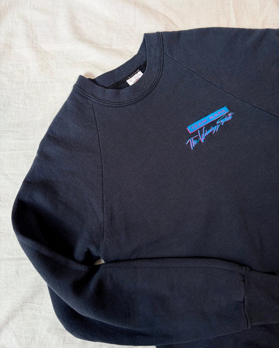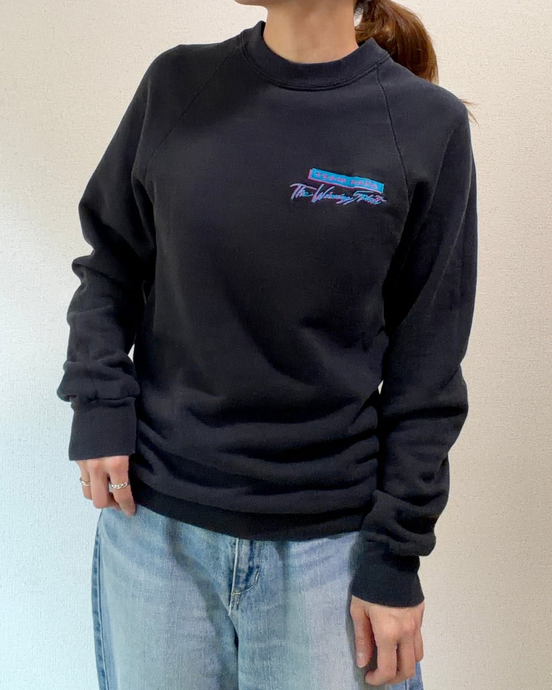ネオンカラーのロゴ刺繍がレトロな雰囲気のスウェットです。